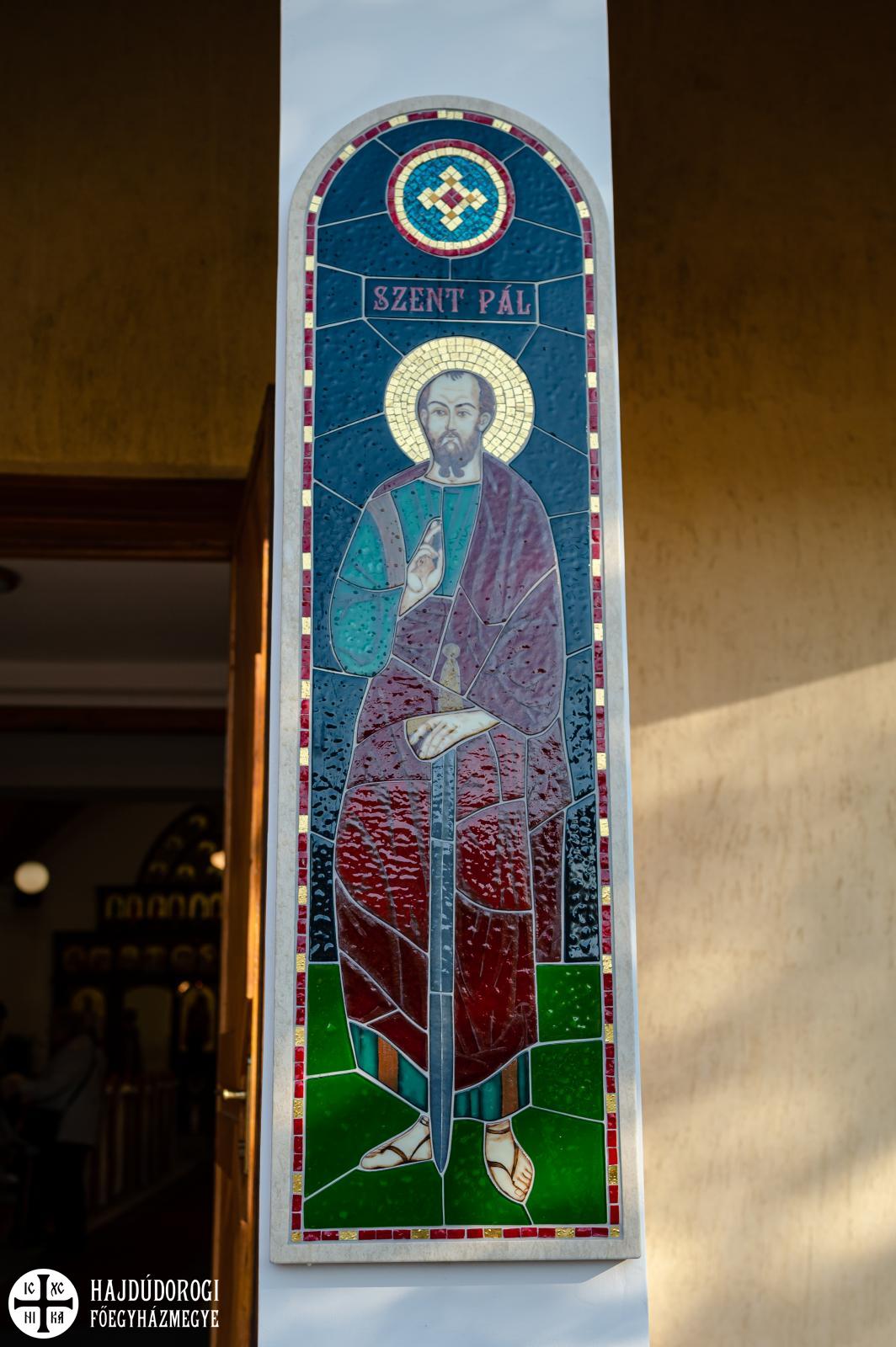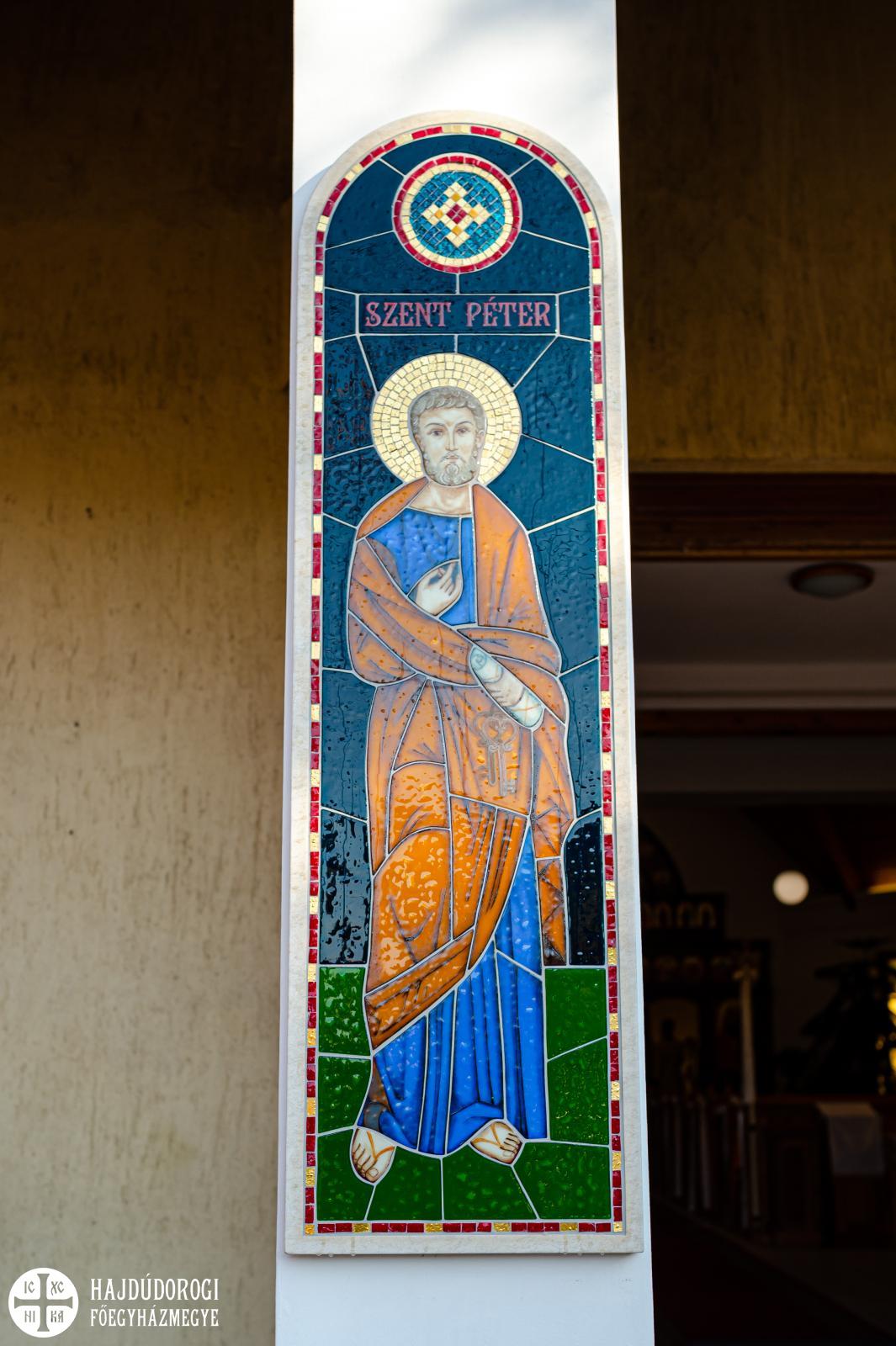 A Szent Liturgia áldása után a papság az asszisztenciával és a népes hívősereggel a templom elé vonult, ahol megszentelte és megáldotta érsek-metropolita atya Szent Péter és Szent Pál mozaikját.