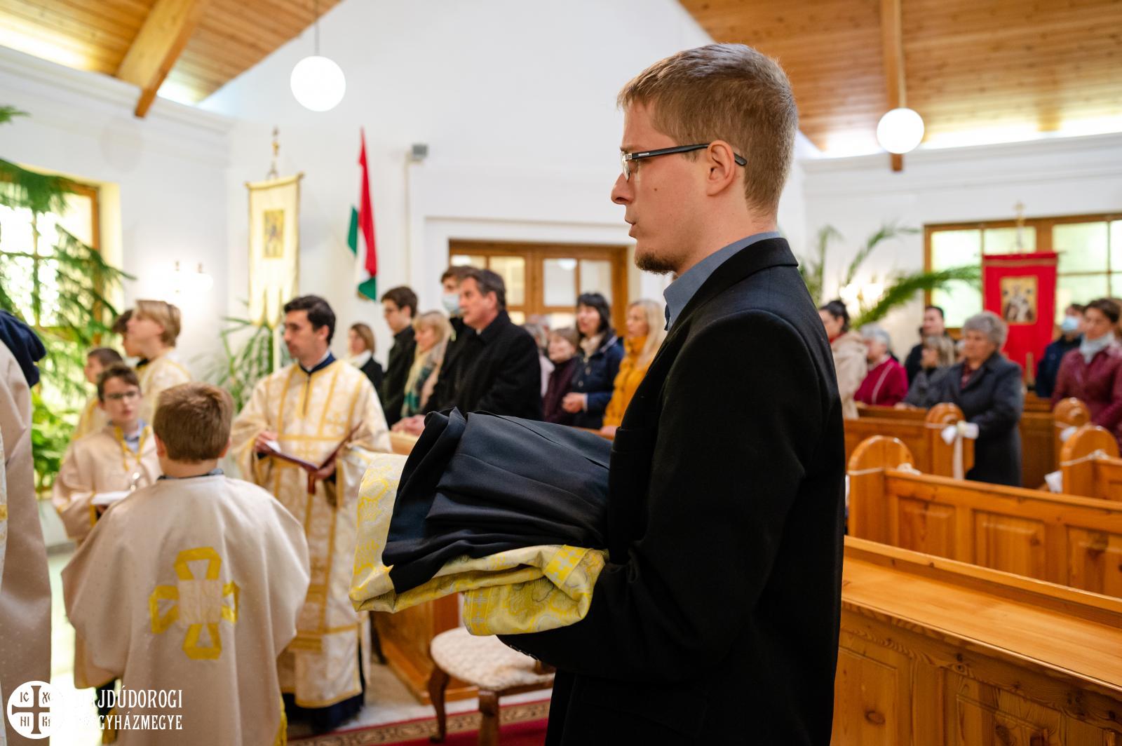 Az ünnep másik pillérét szintén egy hosszabb előkészület és várakozási időszak előzte meg. Gedeon Tamást az egyházközség kántor-felolvasóját avatta alszerpappá Fülöp érsek-metropolita atya.