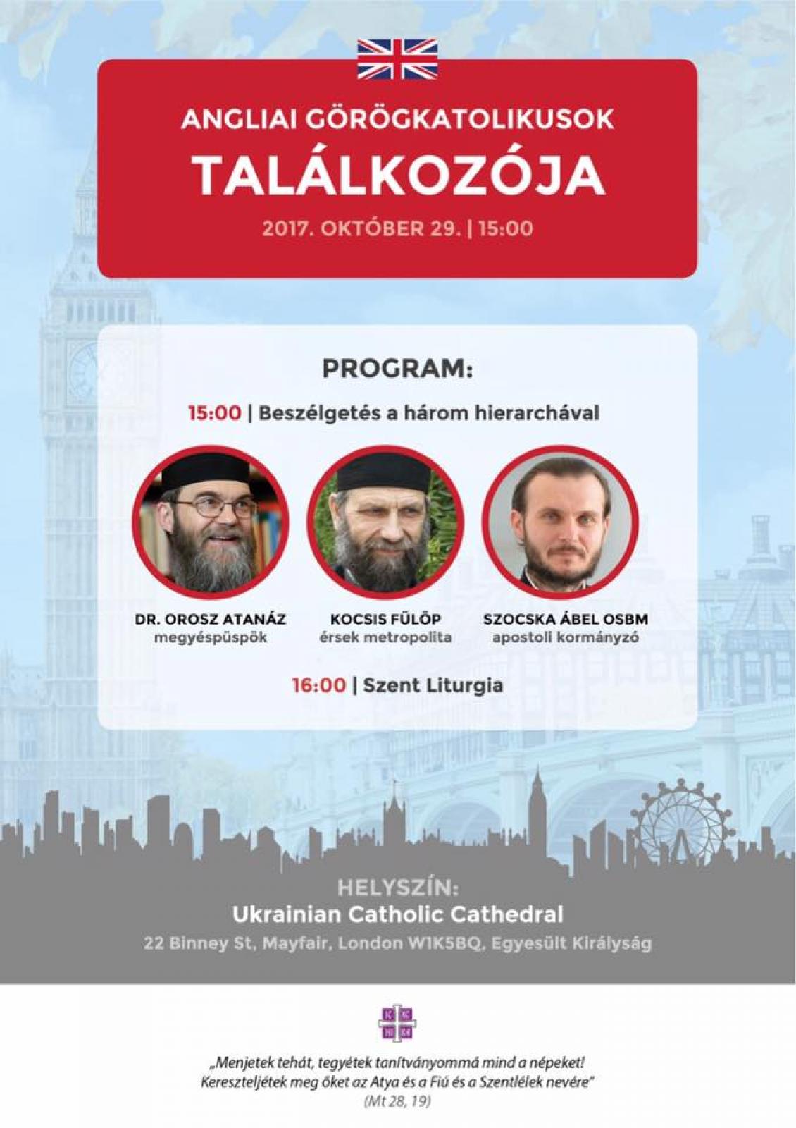 Hiánypótló eseményt rendeznek Londonban, október 29-én. Az Angliában élő görögkatolikusoknak szerveznek találkozót, így erősítve bennük az együvé tartozást. A közösségi oldalon szerveződött egy csoport, amely a Görögkatolikusok Angliában nevet kapta, az első nagyobb rendezvényüket pedig október végén tartják. Nem is akármilyen találkozó lesz: meghívták a három hierarchát is. Beszélgetni lehet velük, kérdéseket feltenni, majd egy Szent Liturgiát is tartanak az ott élő testvéreknek.