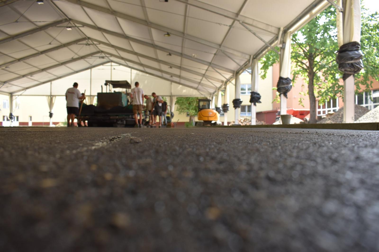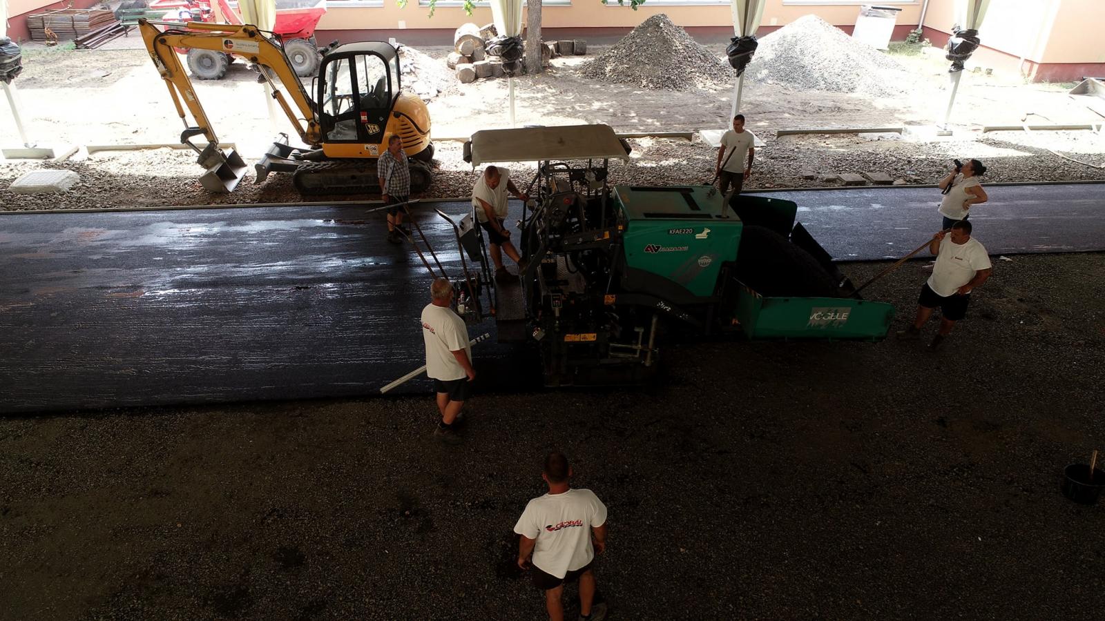 A Globál Sport Kft. saját kivitelezésben építi a sportpálya alépítményét és az aszfalt felületet is, utóbbihoz 110 tonnát használnak fel.