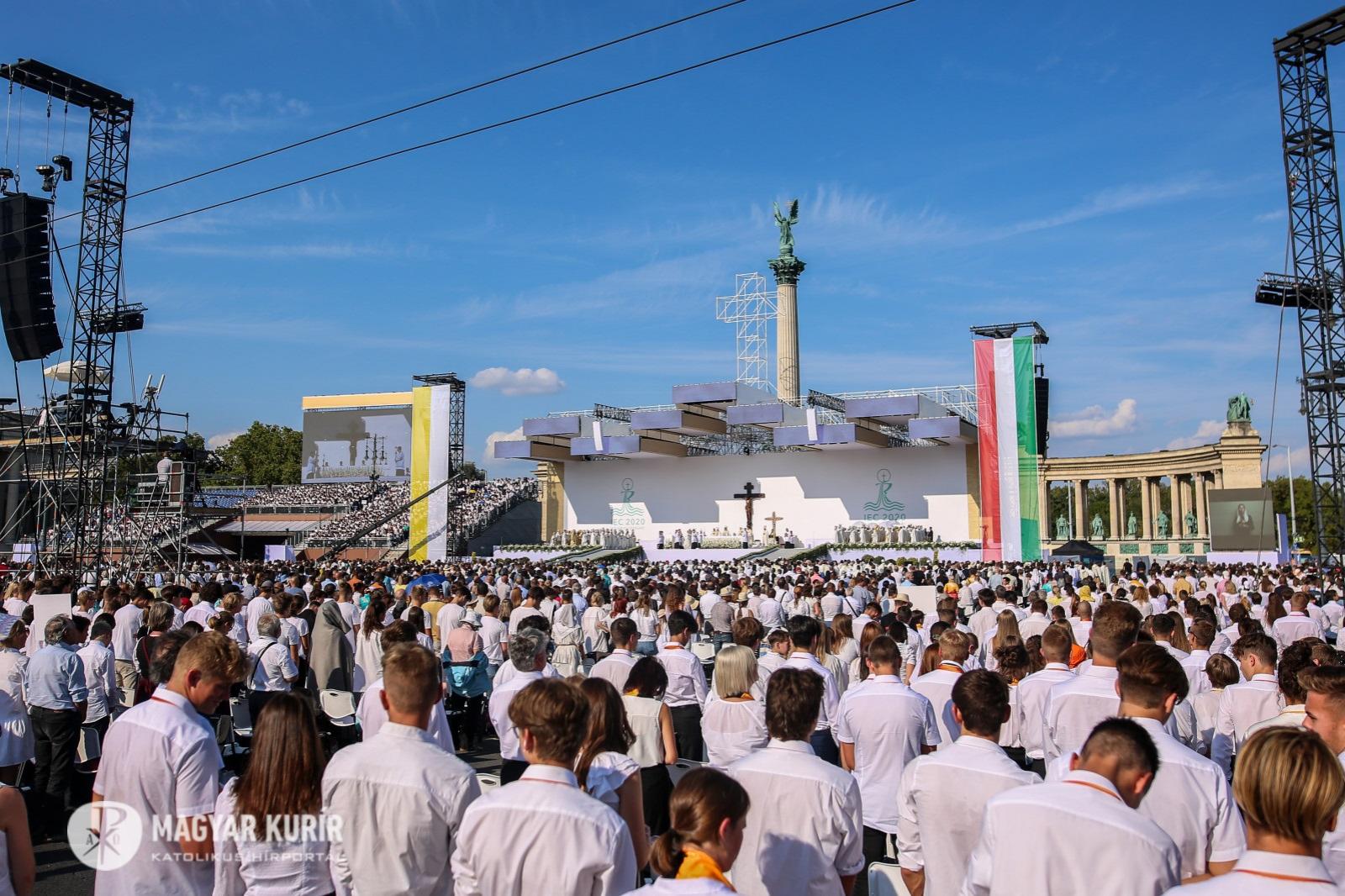 Iskolás gyerekek, elsőáldozók, száz püspök, többszáz pap, állami, egyházi és közéleti méltóságok, hírességek és hívők sokasága vett részt az 52. Nemzetközi Eucharisztikus Kongresszus nyitó szentmiséjén, melyet Angelo Bagnasco bíboros, az Európai Püspöki Konferenciák Tanácsának elnöke mutatott be a budapesti Hősök terén a 80 országból érkezett katolikus hívősereg előtt.