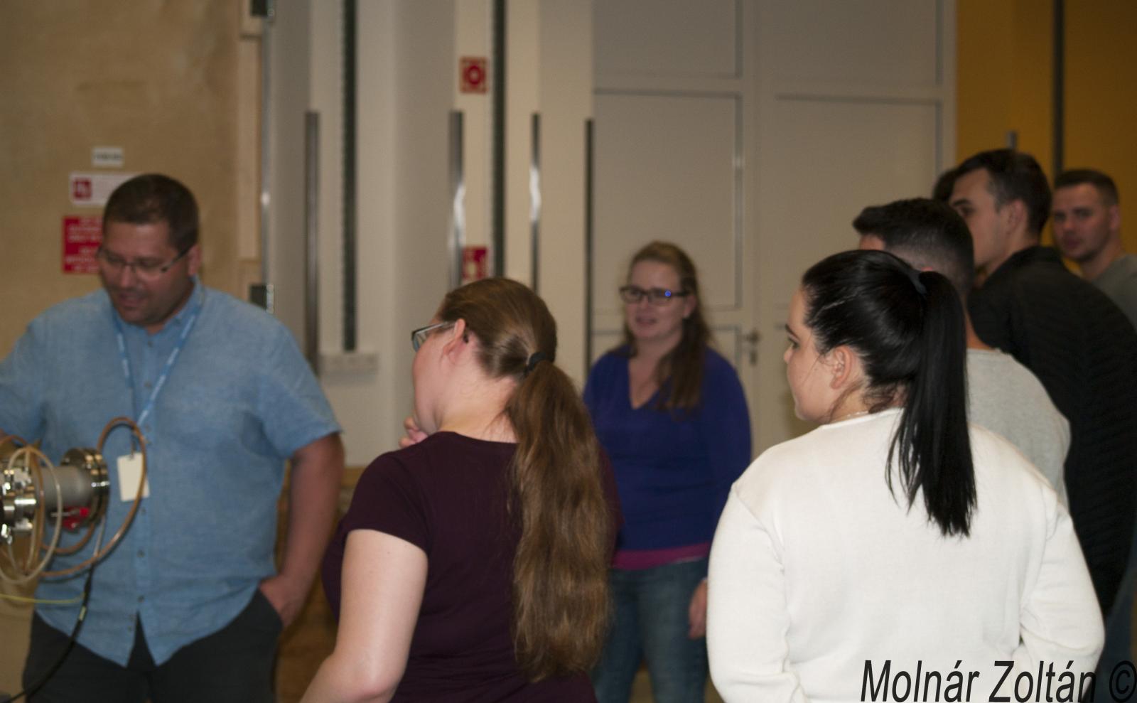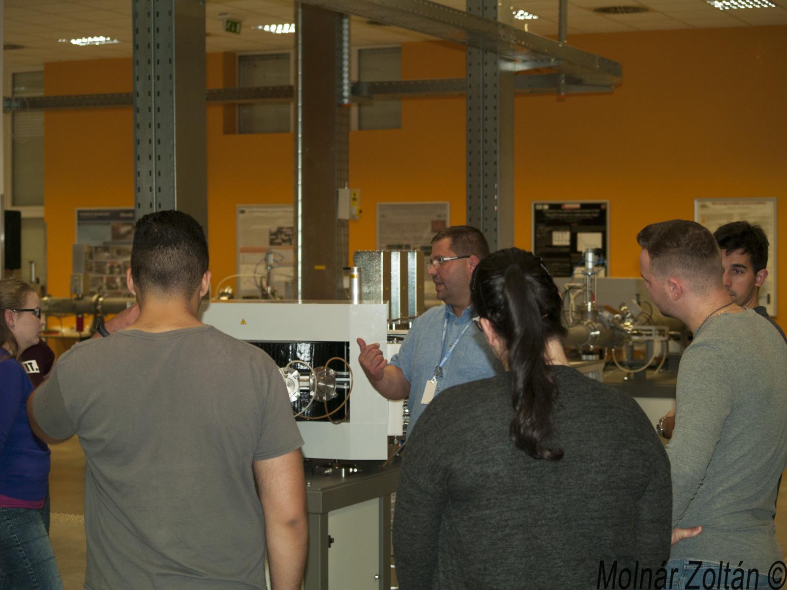 Első állomásként a ”plazma” laborban tettek látogatást a fiatalok. Ott Rácz Richárd mutatta be a laborban folyó kutatásokat. A nagyon érdekes és információ dús percek után, a hallgatók útja a Tandetron laboratóriumba vezetett.