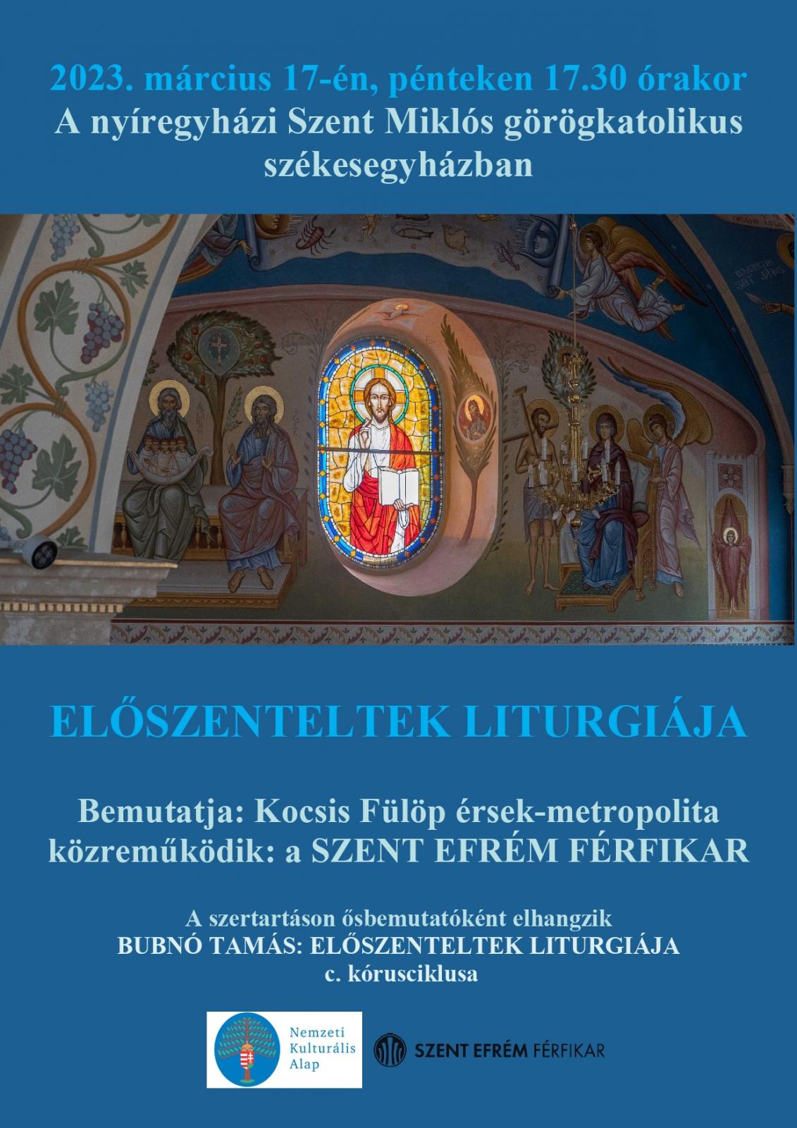 Március 17-én 17:30-tól a nyíregyházi Szent Miklós Székesegyházban csendül fel először a kórusciklus a Szent Efrém Férfikar előadásában, s a változó részekben a kántorképzősben részt vevő hallgatók, a Szent Atanáz Kórus tagjai is közreműködnek.