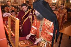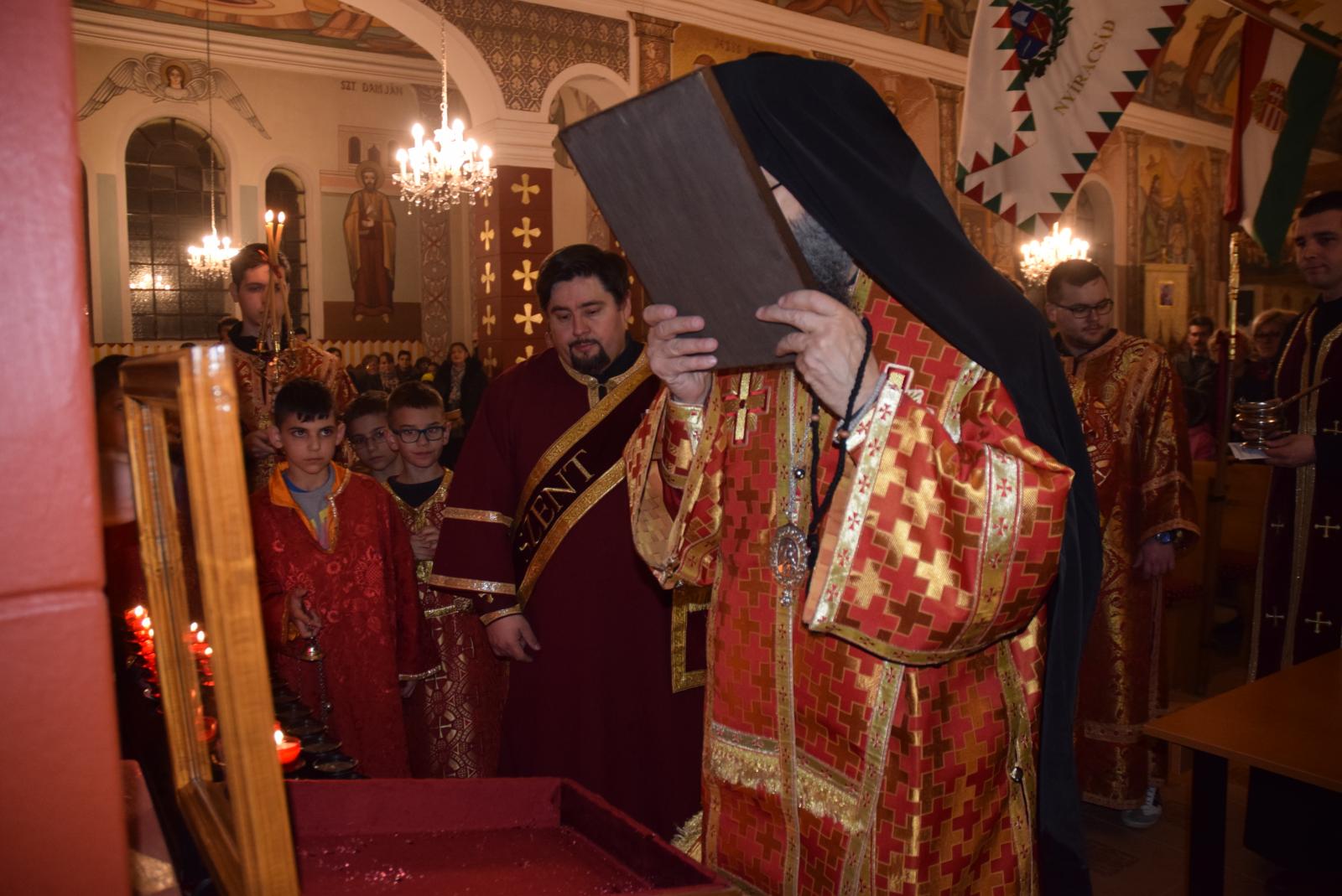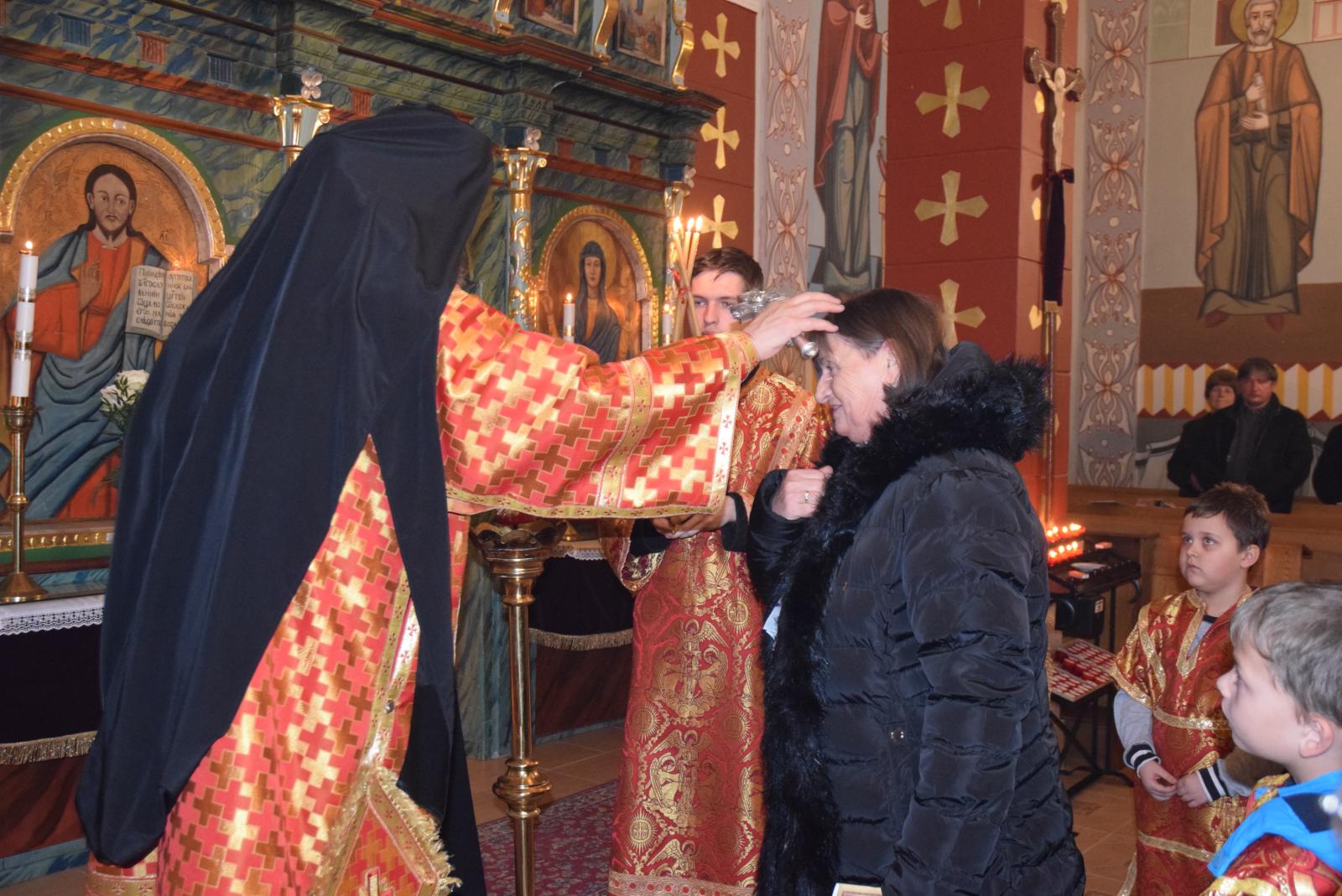A liturgia végén Tóth Elek parókus mondott köszönetet érsek atyának a szertartásért és a böjti gondolatokért, majd bejelentette, hogy Vereb Csabáné helyi ikonfestő készített egy ikont a máriapócsi kegykép mintájára, amit felajánlott a templom, az egyházközség számára.