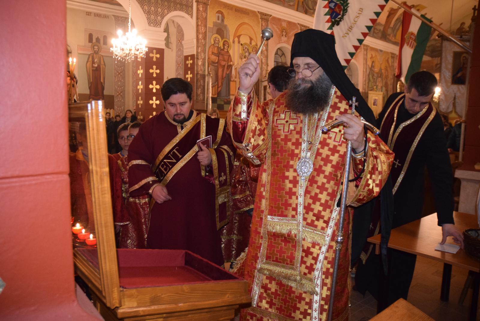 A máriapócsi kegykép nyíracsádi látogatásának évfordulója tiszteletére Vereb Csabáné korábban már megszentelt ikonja üvegtartóba került, hogy a hívek közvetlen közelről tudják tiszteletüket tenni a Pócsi Szűzanya képe előtt. Érsek atya megáldotta előbb az alkotót, majd az ikontartót, végül saját kezűleg helyezte el az ikont a zárható üvegtartóba.