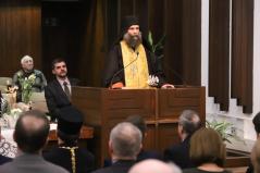 „Nem csak a templomban Úrvacsorával vagy az Eucharisztiával gyűlünk oda az Úr köré, hanem minden egyes alkalommal, amikor vendégül látok valakit, leülök étkezni az annak a szeretetnek a kifejeződése, amit én is kaptam. A szeretetet akkor tudom továbbadni, ha fölismerem, hogy Kitől kaptam. Ha ez a kapcsolódási pont kimarad, lehetek én akármekkora szívű az ideig-óráig tart, mert az csak emberi szeretet, ami pedig véges. Főleg amikor nem kapok viszonzást, nincs hála, egyszerűen elfogy. Ezért a vendéglátásom forrása az, hogy én is >>egy nagy Úrnak vendége vagyok<<” – élt Kosztolányi Dezső szavaival Fülöp metropolita és arra kért mindenkit, hogy ismerjük fel milyen pompás asztalhoz vagyunk meghívva, maga a Teremtő Isten, a Megváltó Isten, a Szentlélek Isten a maguk Szentháromságos asztalához hívnak bennünket. Ennek vagyunk részesei és ezt osztjuk tovább kifogyhatatlanul.