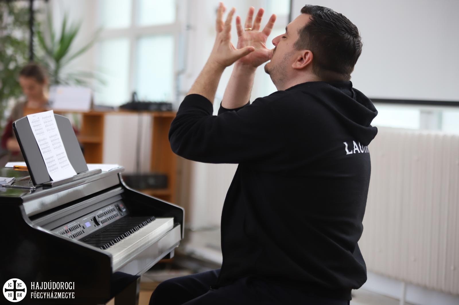 Mindenki ezt csinálja egyébként. Hallgatóként sem vagy előrébb a gyakorlati óráidon, hiszen egy „vegytiszta” csapatot kapsz meg 45 percre, akiket nem kell fegyelmezni. Tehát, szerintem minden tanár már diplomásként, a katedrán állva tapasztalja meg, hogy mennyire alkalmas a tanításra. Saját szabályokat, feltételeket kell tudni kialakítani, úgy, hogy mindeközben rendet tart. Ha erre nem érez rá egy pedagógus rövid idő alatt, akkor később sem fog. A karnagyi lét kétharmada is pszichológia, s a többi része a szakma. Ezért tudok ebben boldogulni.