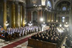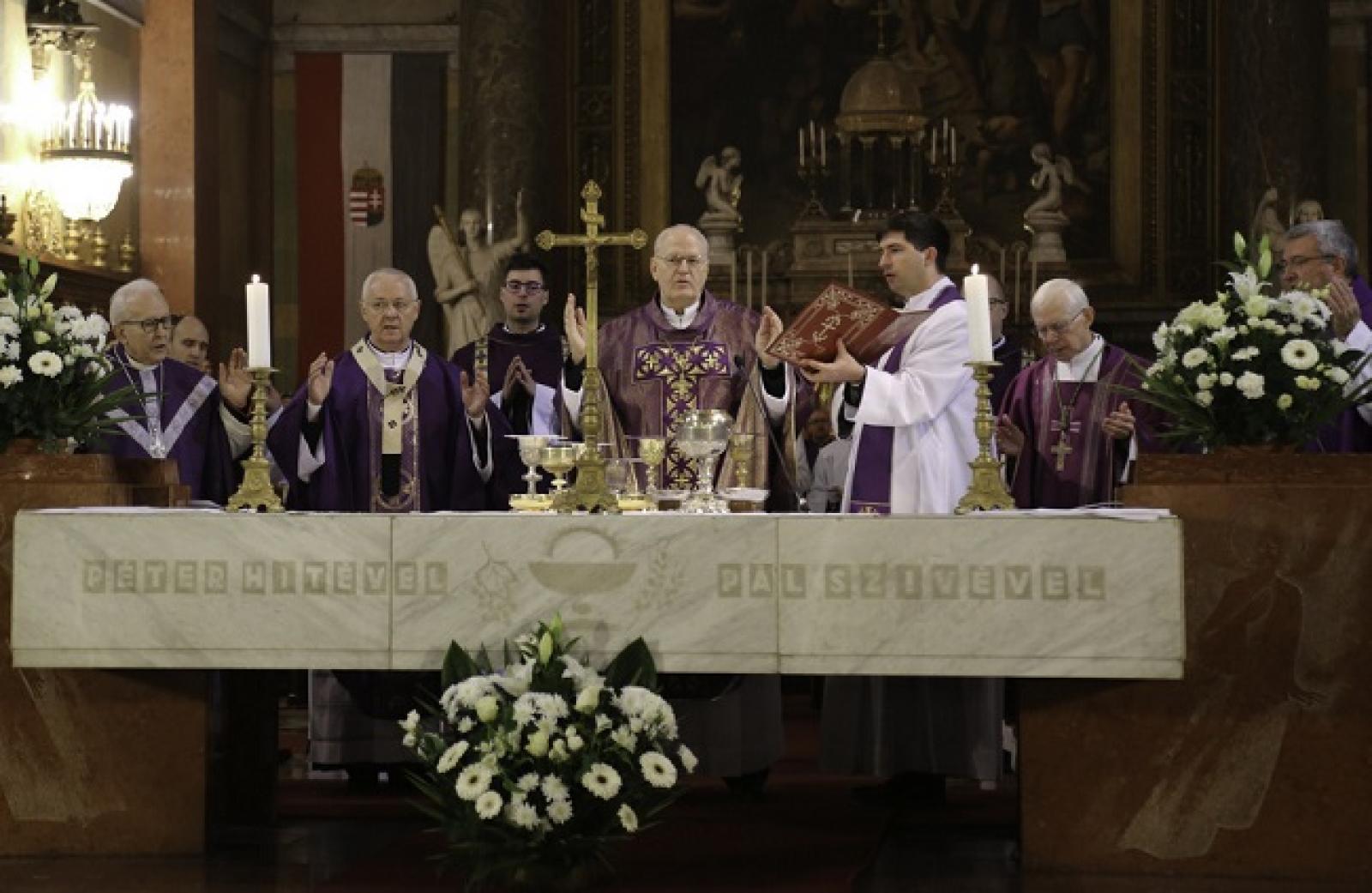 A dicsőséges rózsafüzér imádsággal kezdődött a szertartás, melyen a rokonság mellett Michael August Blume apostoli nuncius, Orbán Viktor miniszterelnök, Semjén Zsolt miniszterelnök-helyettes, Soltész Miklós államtitkár, világi vezetők, hazai és külföldi püspökök, a papság és hívek nagy serege vett részt.