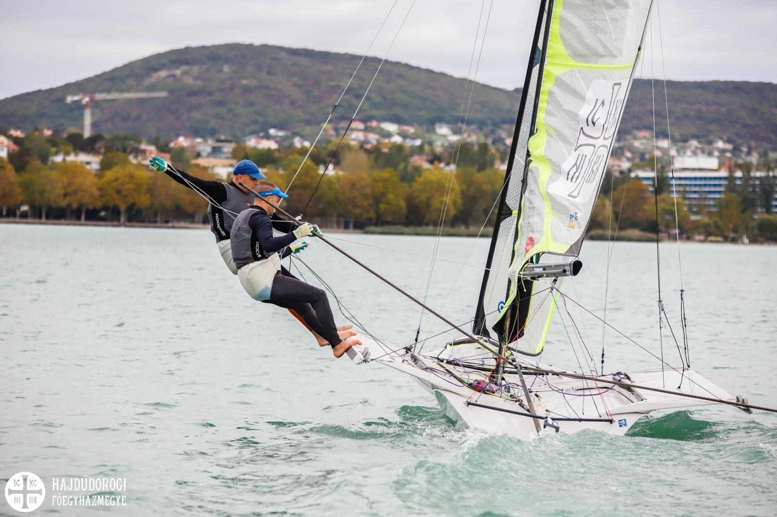 A testvérpár a beöltözést követően mezítláb bocsátotta a 15 fokos vízbe a hajót – mint mondták, vitorlázás közben annyira melegük van, hogy nem fázik a lábuk. Testközelből lehettünk tanúi a vitorlások elismerésre méltó teljesítményének, hiszen a BYC jóvoltából egy gumicsónakkal és egy sétahajóval kísérhettük őket a füredi öbölben. Fülöp metropolita újabb tételeket pipálhat ki bakancslistájáról, hiszen mind a motorcsónakot, mind a sétahajót vezethette.
