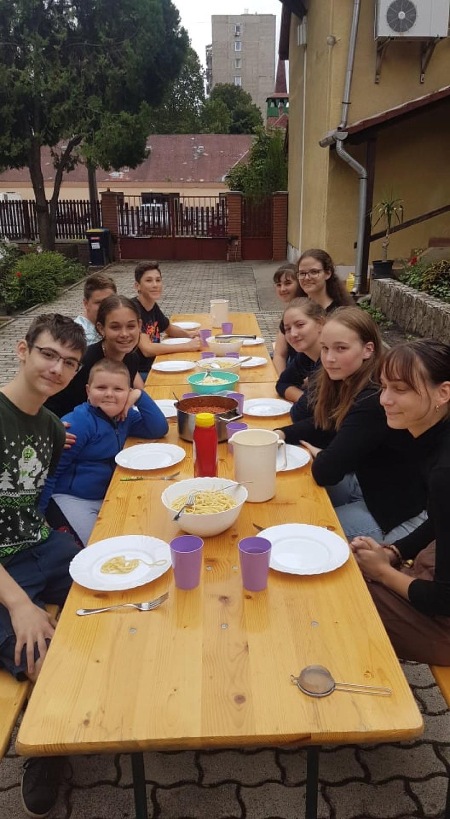 Alkalmainkat is ezért szeretjük. Mindegy, hogy mit csinálunk, fő, hogy együtt. Szeretünk közösen játszani, beszélgetni, együtt imádkozni a kápolnánkban, vagy éppen a konyhában készíteni valamit, amit együtt elfogyasztunk. Szeretünk karitatív munkát végezni, hogy általunk is fejlődjön a közösségünk. Sok példa van előttünk az idősebbek között. Így igyekszünk részt venni a templom ünnepi előkészületeiből vagy éppen a parókia udvar rendezésében is.