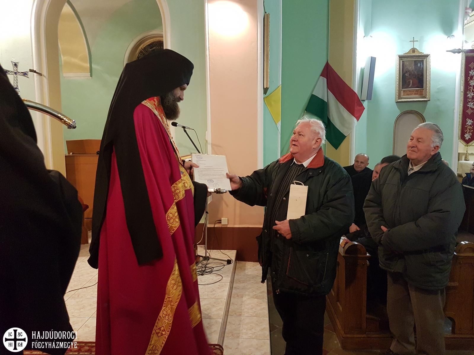 Berettyóújfalu jelenleg a pocsaji egyházközség filiája, Zolcsák Miklós pocsaji parókus havi két alkalommal végez Liturgiát a Jézus Szíve római katolikus templomban. A mostani esti zsolozsmát számos egyházkerületi atya is megtisztelte jelenlétével. Érsek-metropolita atya köszöntő beszédében hangsúlyozta a római katolikus egyház által december 8-án ünnepelt Szűz Mária szeplőtelen fogantatása, valamint az egy nappal később, december 9-én a görögkatolikus egyház által ünnepelt Szent Anna csodálatos foganása eseményeinek szimbolikus jelentőségét, hisz azon az estén görögkatolikus hívekként a római templomban is egyfajta átmenet részesei lehettünk.