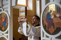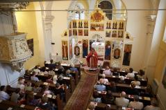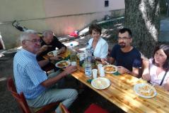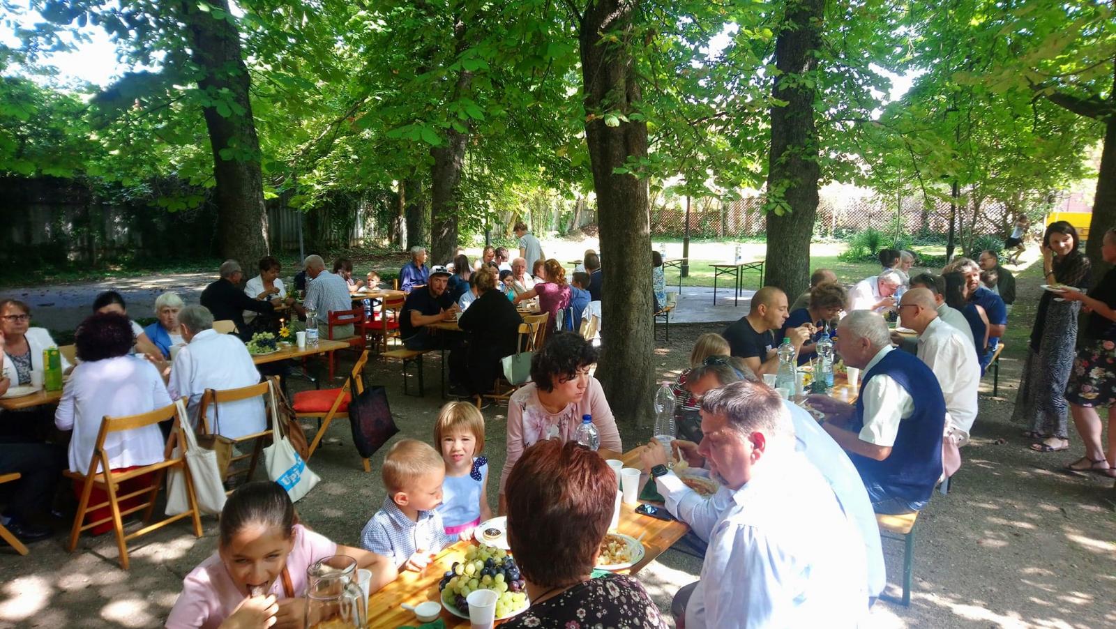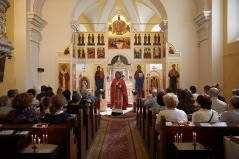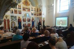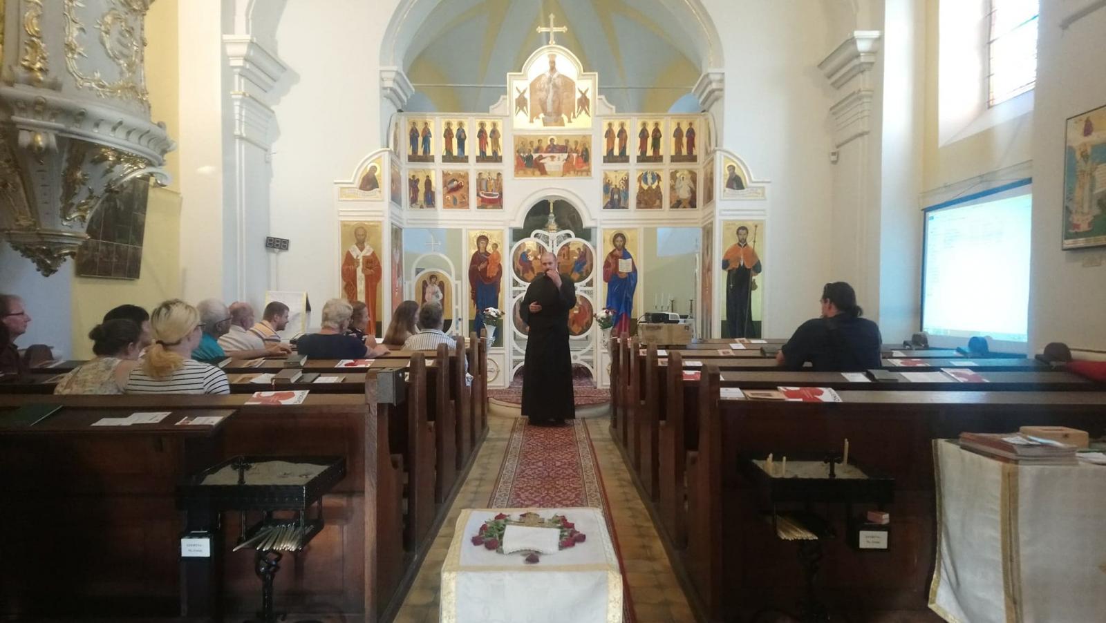A szertartás után mindannyian a közösségi házunkba vonultunk, ahol nem csupán László atyát éltettük, hanem egyházközségünk Családi Napját is ekkor tartottuk. Közös együttlétünk késő délutánig tartott, melyen közel százan vettünk részt. Akiben még ezek után is maradt lendület, szeretettel vártuk vissza templomunkba, ahol az Ars Sacra Fesztivál keretein belül Gábor atya a keleti ikontiszteletről tartott előadást a jelenlévőknek.