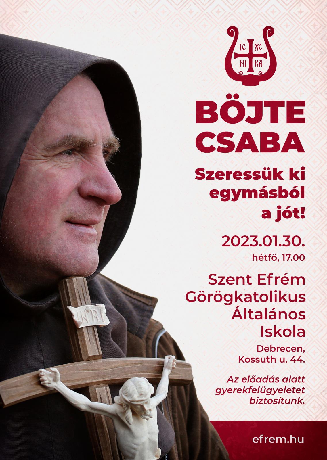 A január 30-án induló Szent Efrém-hét első napján Böjte Csaba ferences rendi szerzetes, a Dévai Szent Ferenc Alapítvány alapítója lesz a meghívott vendég.