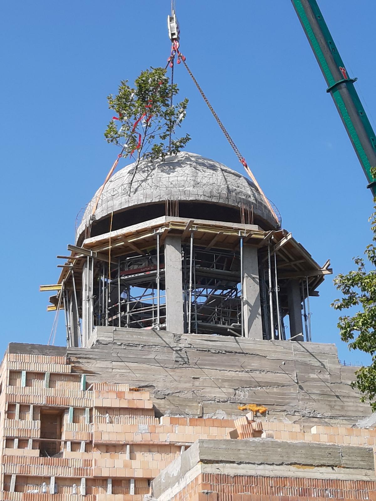 Ezt követően a boltozatokat fedő nyeregtető és annak cserép héjazata valamint a kupolát fedő süveg készül el. A kivitelező a templom mellé egy harangtorony felépítését is vállalta.
