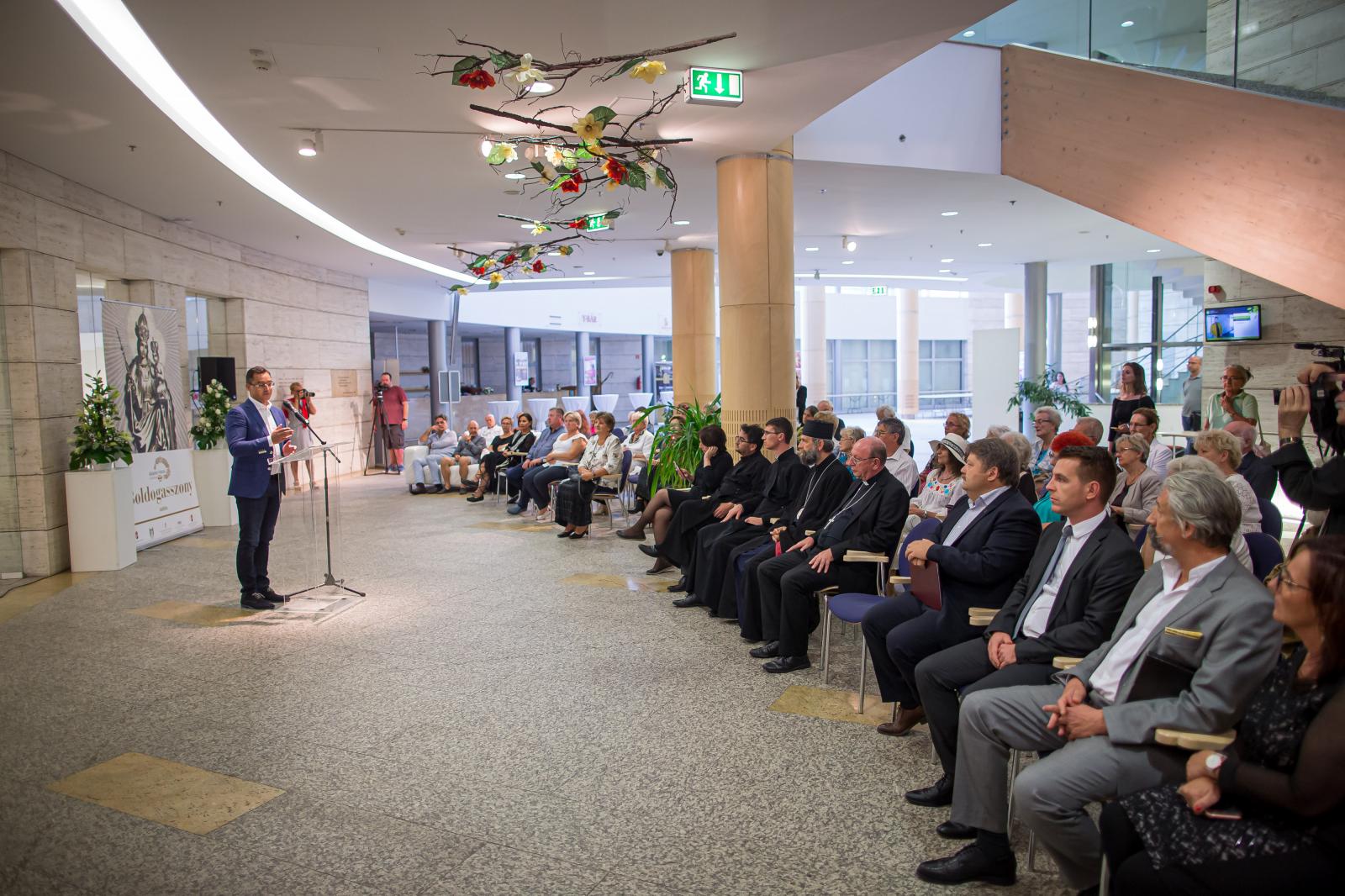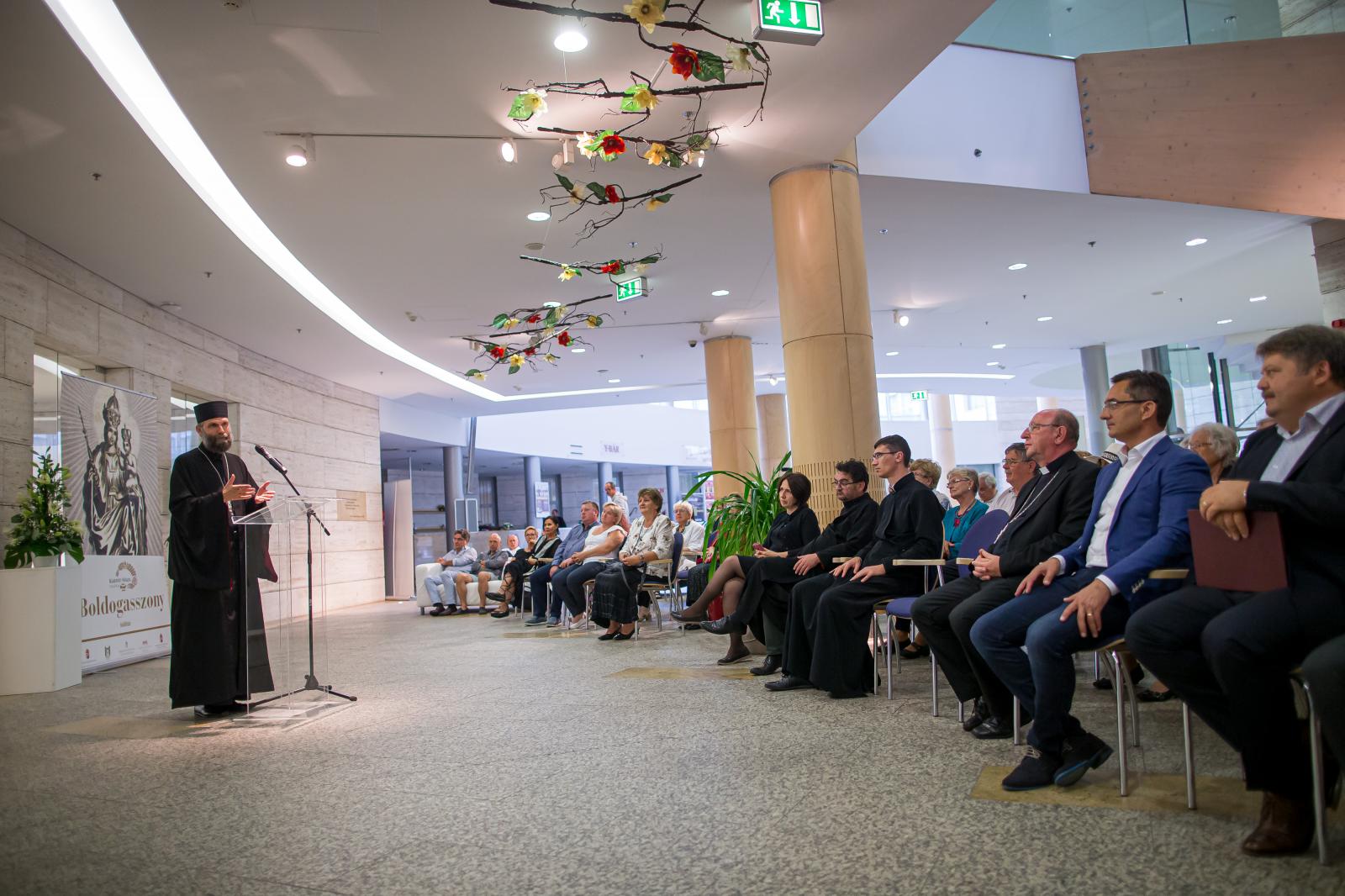 Kocsis Fülöp görögkatolikus érsek-metropolita szerint "amikor Máriát, édesanyánkat Boldognak mondjuk, azt fejezzük ki, hogy Isten szeretetét közvetíti felénk". Szász Jenő, a Nemzetstratégiai Kutatóintézet elnöke felidézte, hogy a vándorkiállítás 2014-ben Budapestről indult, és Debrecen az utolsó Kárpát-medencei helyszín ahol bemutatják. Debrecenből Rómába viszik az alkotásokat, onnan pedig Brüsszelbe, hogy "figyelmeztessük Európát a fővárosán keresztül, hogy az a 12 csillag mégiscsak keresztény Európánk hitére és gyökereire utal".