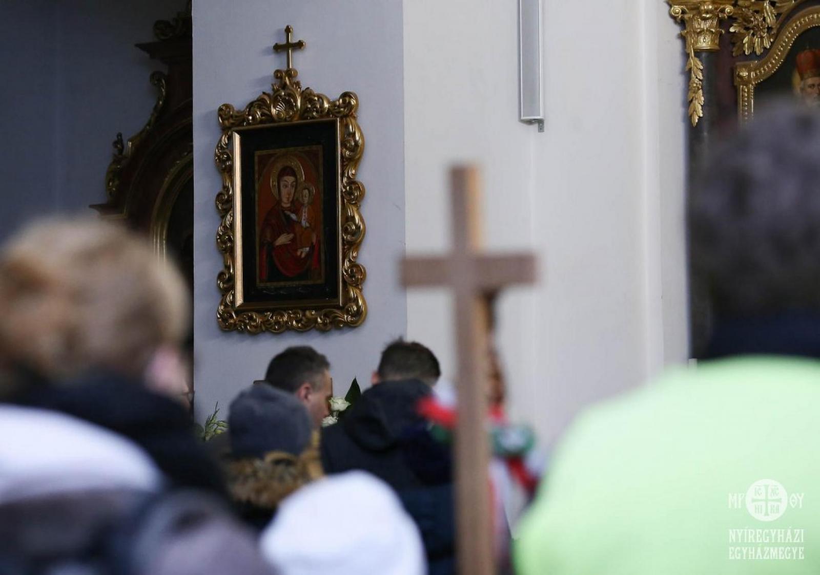 Sötétedés után, fél hatkor érkeztek a Könnyező Szűzanya elé a zarándokok. A hálaadó Szent Liturgiát Ivancsó Sándor atya celebrálta, beszédet mondott Kocsis Fülöp metropolita.