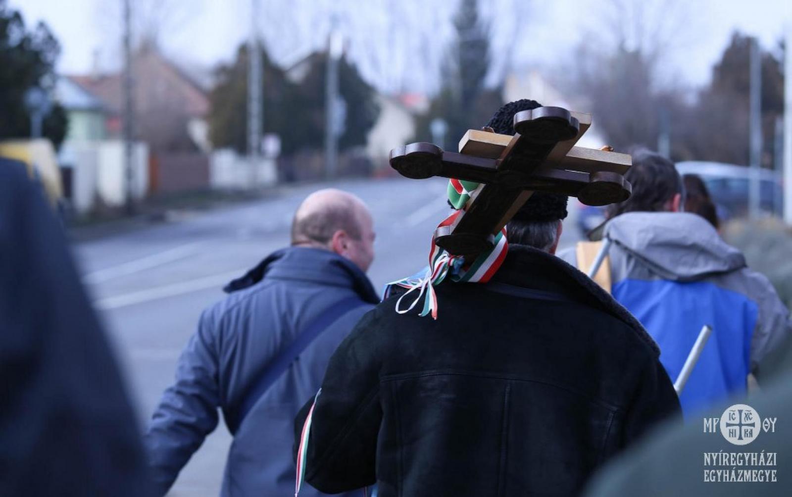 Február 7-én 4 és 5 óra között az éjszaka még mélyen alszik (a hajnalpír csak később tűnik fel az ég peremén). Nem így a zarándokok, akik a hajdúdorogi bazilika előtt gyülekeztek a korai időpontban, majd a székesegyházban zarándokájtatossággal készültek lélekben az ötven kilométeres útra. Több mint harmincan imádkozták végig az útindító könyörgéseket a templom félhomályában.