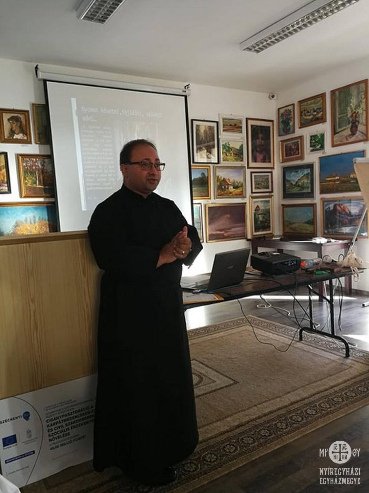 A Miskolci Egyházmegye cigánypasztorációs referense, dr. Balogh Győző atya tartotta az utolsó előadást „Az idők jelei” címmel. Sok-sok kutatási eredménnyel, statisztikai adatokkal is alátámasztott felhívása: újra meg újra vizsgáljuk meg, hol tartunk, miben kell változnunk, megújulnunk, vegyük észre az idők jeleit!