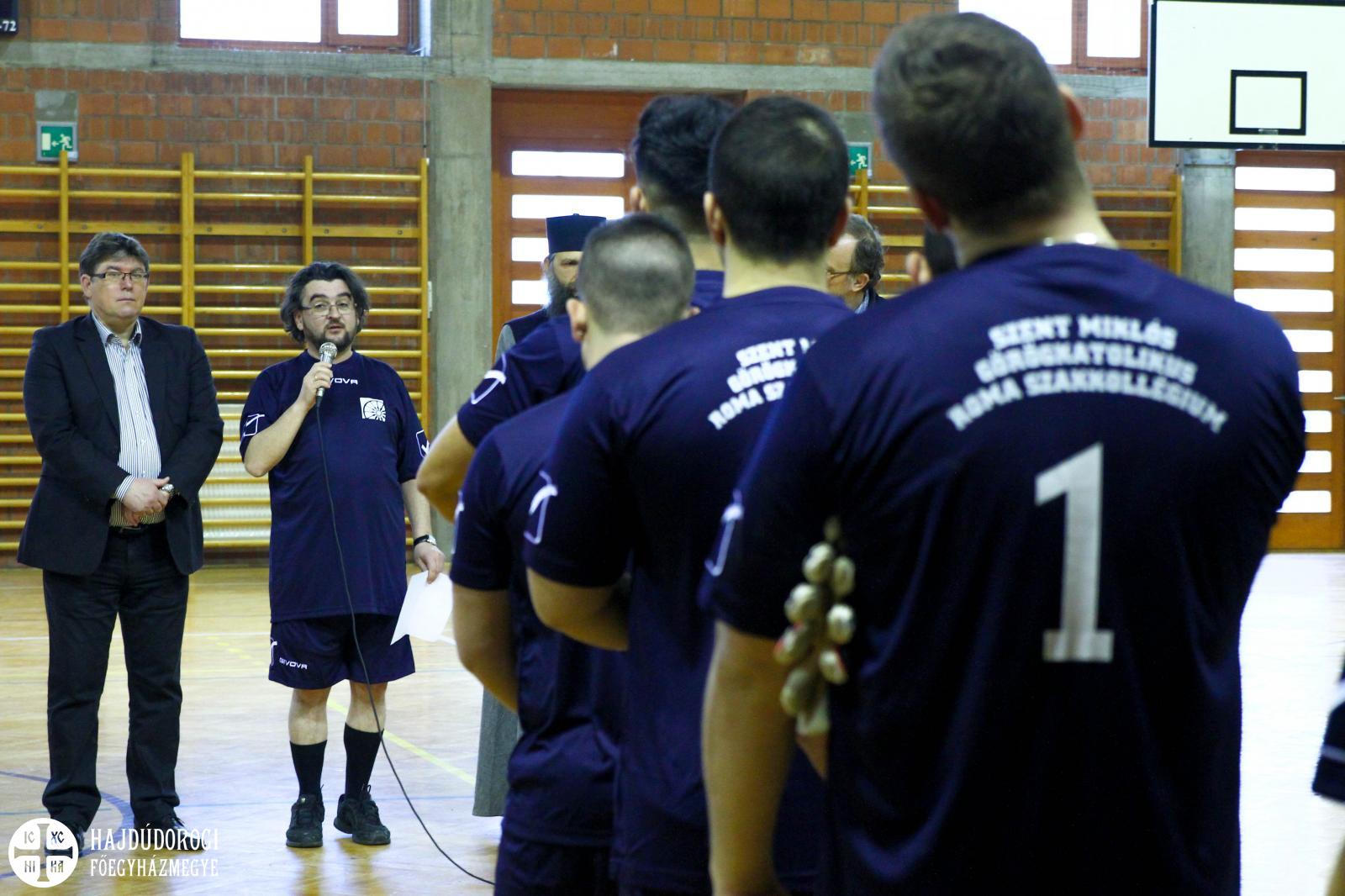 Immár ötödik alkalommal rendezték meg a Keresztény Roma Szakkollégiumi Hálózat országos teremlabdarúgó tornáját. A tavalyi esztendőben az újoncként diadalmaskodó debreceni görögkatolikus kollégiumunk a vándorserleg megnyerése mellett, az idei rendezés jogát is megszerezte. A rangos torna helyszínét a hajdúdorogi Szent Bazil Oktatási Központ Tornacsarnoka biztosította. A megnyitó ünnepség Kocsis Fülöp érsek-metropolita atya szavaival indult, majd a KRSZH elnöke, Laborczi Géza köszöntötte a résztvevő csapatokat. Házigazdaként Kapin István lelkiigazgató és Rózsahegyiné Juhász Éva igazgató nyitotta meg az idei tornát. Meghívott vendégként részt vett Herczeg András, a DVSC ügyvezetője, Sztojka Attila és Rácz Tibor, az EMMI Szociális Ügyekért és Társadalmi Felzárkózásért Felelős Államtitkárságáról.