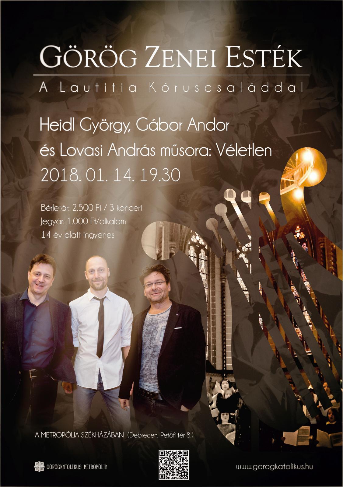 2018. január 14-én vasárnap az Érseki Hivatalban rendezendő Görög Zenei Esték során a Lautitia Kóruscsalád, Lovasi András és Heidl György ad koncertet. Emellett a vállalkozó szellemű szülők is beszállnak majd az éneklésbe. Bár a program nyitott és ingyenes, a Görög Zenei Estéken belépőjegyet kell váltani. Ennek oka, hogy a korábbi és a később rendezendő koncertjeink is jótékony célt szolgálnak. A mostani bevételt a Kőr Dáma Egyesületnek ajánljuk fel, akik rászoruló családokat támogatnak ebből a pénzből. Emellett szintén egy jelentős összeget adományozunk a Mosolyvirág Nagycsaládosok Debreceni Egyesületének is.
