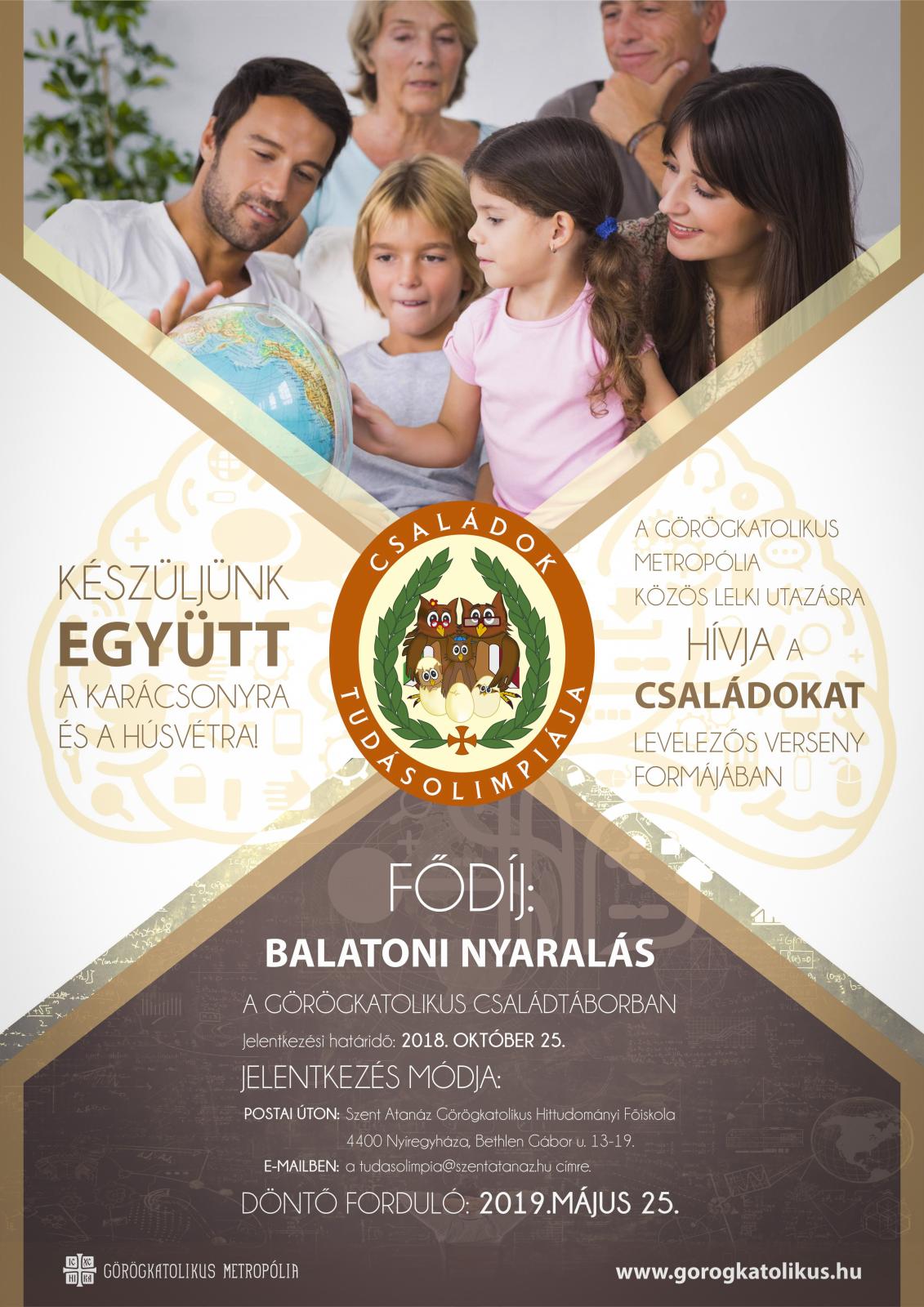 Mint, ahogyan arról beszámoltunk a 2018/19-es tanévben két új ággal bővül a Görögkatolikus Tudásolimpia: a "Családi Görögkatolikus Műveltségi Versennyel", illetve a "Nyugdíjasok Tudásolimpiájával". Előbbire is elindult a jelentkezés, érdemes benevezni a versenyre, hiszen a nyertes család a Balatonon tölthet el egy hetet, jövő nyáron.