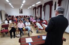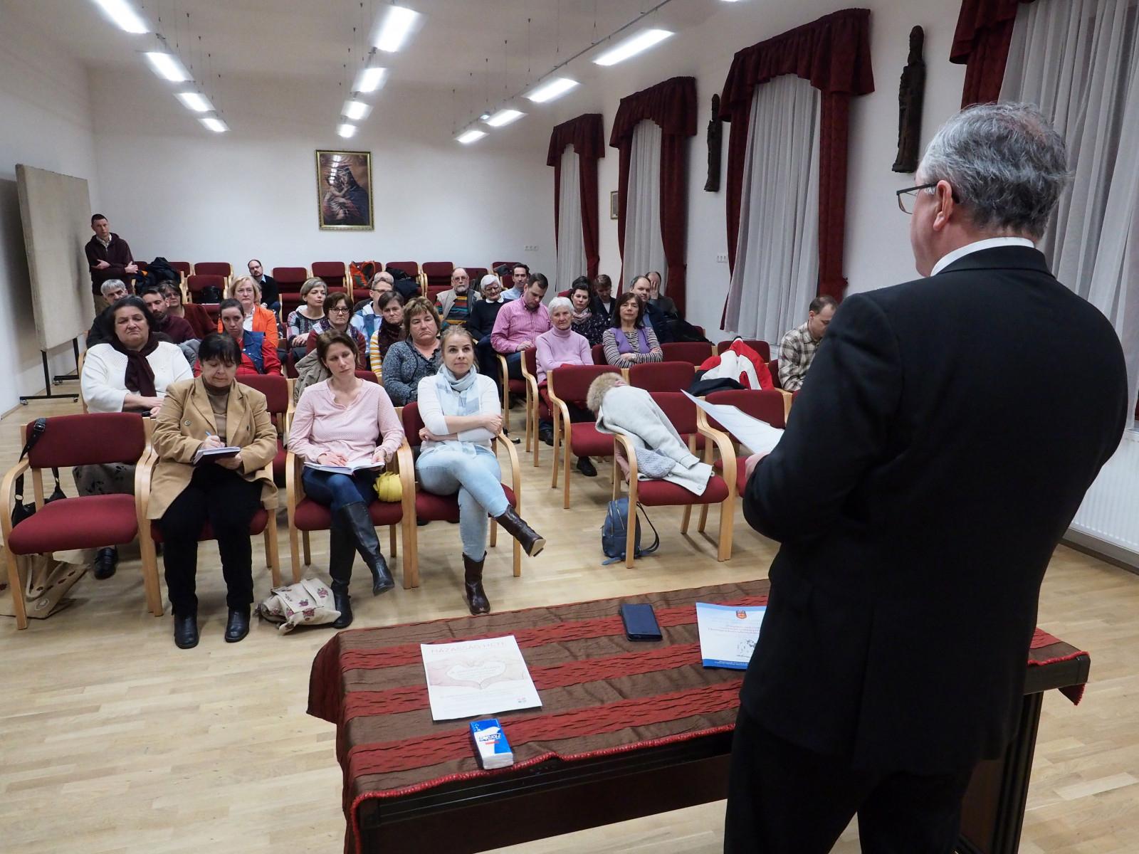 A Veszprémi Főegyházmegye Családpasztorációs Irodája által szervezett eseményről nehéz a beszámolók megszokott kimért hangján szólni. A házasság hetének hivatalos rendezvénye a görögkatolikus esperes jóvoltából pillanatok alatt lelki oázissá változott. A hétköznap terheit hátrahagyva, a napközben könyörtelenül cikázó gondolatok – „leadtam, bezártam, felhívtam, megvettem, elküldtem…” – az előadás második percére eltűntek a jelentéktelenség ködében, és átadták helyüket a szeretet iskolájának, ami az előadás címe is volt.