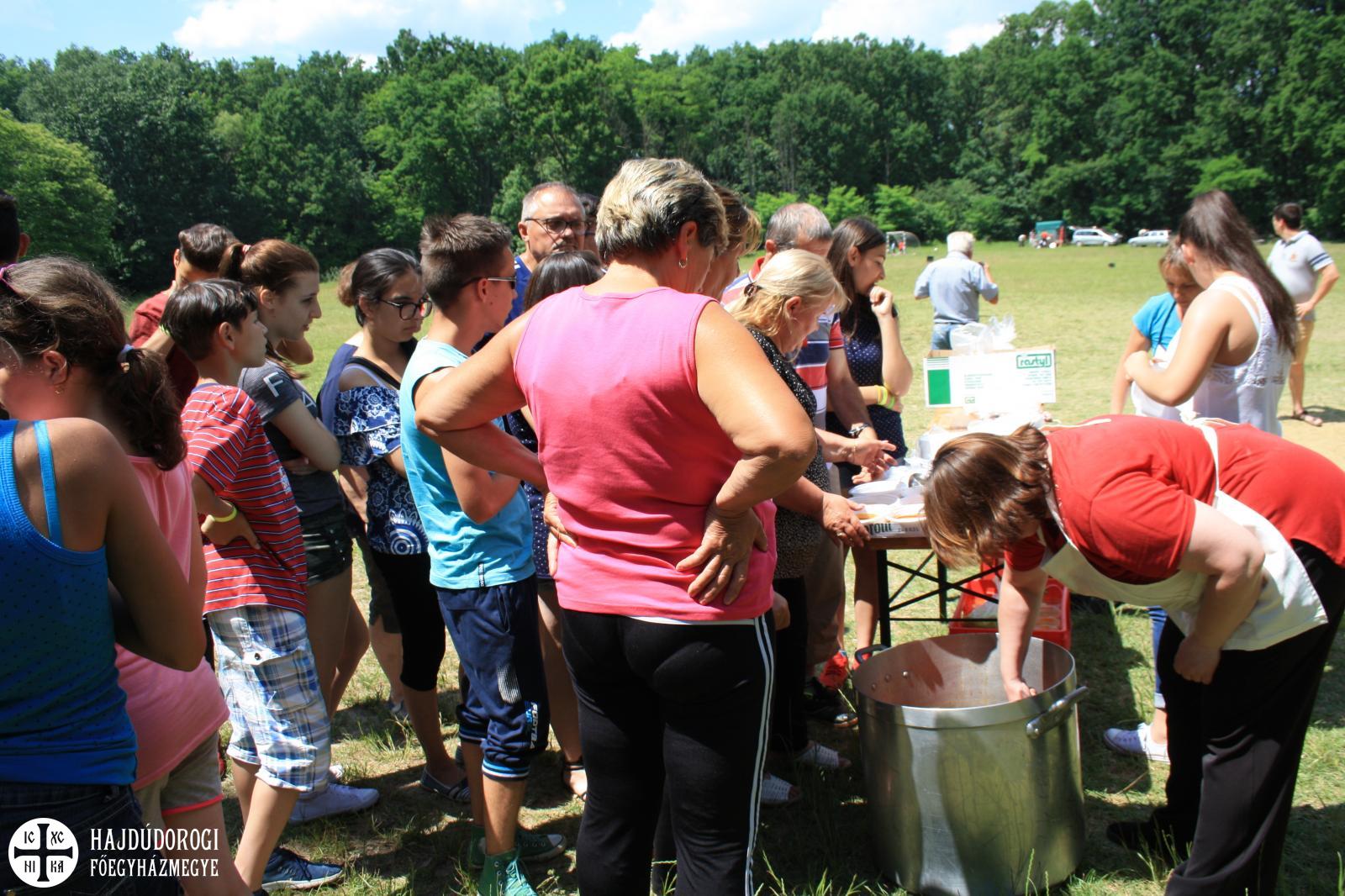 A napot közös imával kezdték, melyet Szarka Gergely atya vezetett. Rögtön utána nekiláttak résztvevők a főzőverseny elkészítéséhez. Szép lassan rotyogott a bográcsban minden finomság…A gyerekek a Vojtina Bábszínház előadását nézték meg a színpadon, de ez idő alatt a szülőknek is izgalmas témákkal érkeztek a trénerek: Gajdos Viktória és Kárpáthiné Könczöl Tímea a női sorsok fordulópontjairól és a szentségi élet jelentőségéről beszélt. Erdei Sándor szíverősítőt hozott magával a férfiaknak. Soltész Ian pedig segített abban, hogyan legyünk kiegyensúlyozottabbak? A Kassai Lovasíjász Iskola Bodnár törzse tartott lovasíjász bemutatót, fellépett a Csicseri és Borsó, és a Hajdú Néptáncegyüttes.