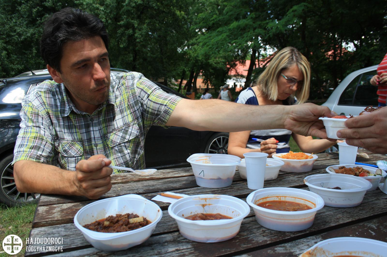 Közben elkészültek a bográcsos ételek is. 17 csapat nevezett be a főzőversenybe, az Érseki Hivatal két díjat is besöpört: a lapcsánka és a marhapörkölt nagy sikert aratott. Gratulálunk a Keczán családnak, a Csapókerti és a különdíjas Attila téri görögkatolikus közösségnek is az eredményhez!