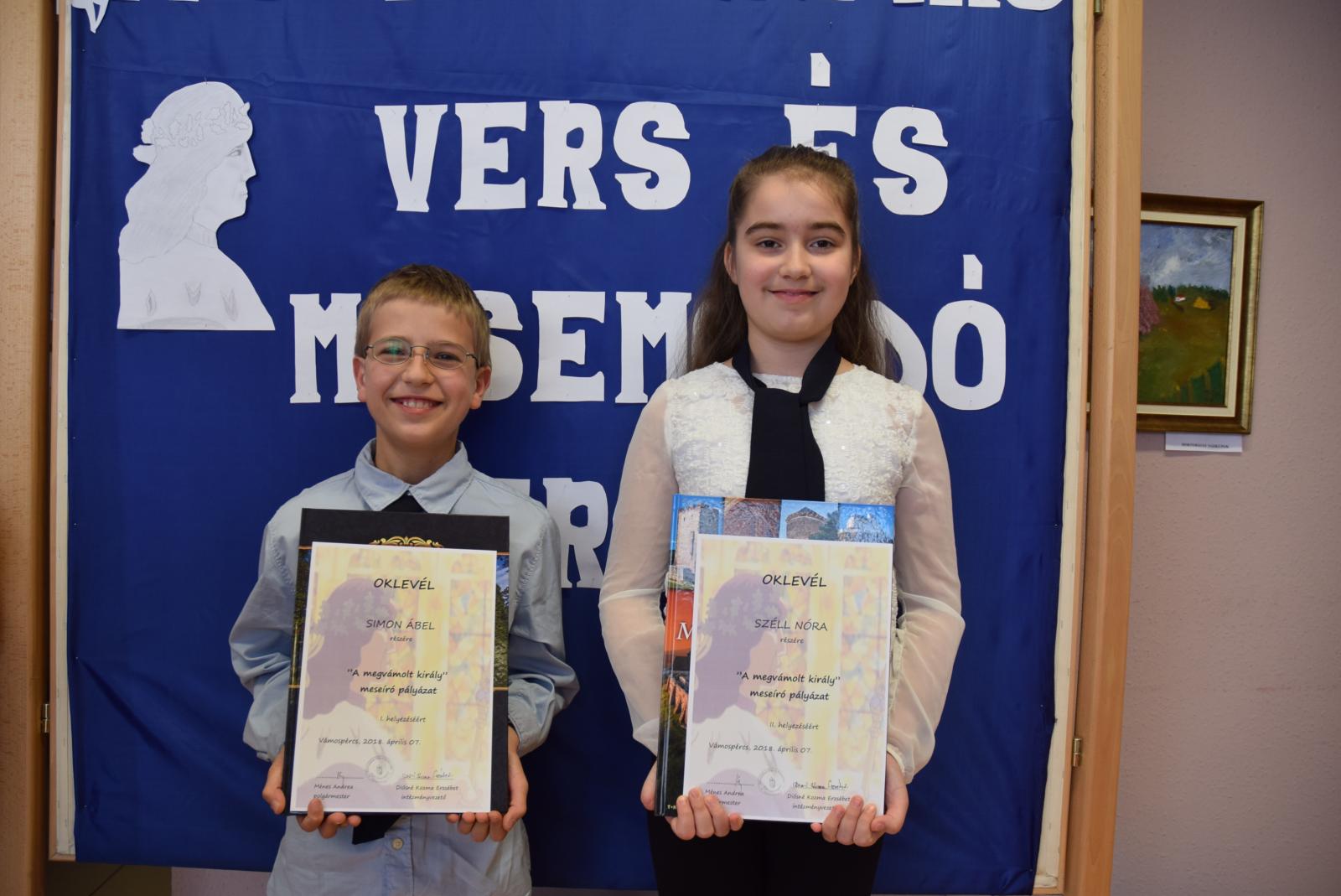 A pályaműveket Halász Margit író és Korpa Tamás költő zsűrizte. Legnagyobb örömünkre a verseny első és második díját is iskolánk, a Szent Piroska Görögkatolikus Általános Iskola egy-egy tanulójának ítélték oda. A díjátadó ünnepségen Simon Ábel az 1. helyezésért, Széll Nóra pedig a 2. helyezésért vehette át Ménes Andrea polgármester asszonytól az oklevelet és a könyvjutalmat.