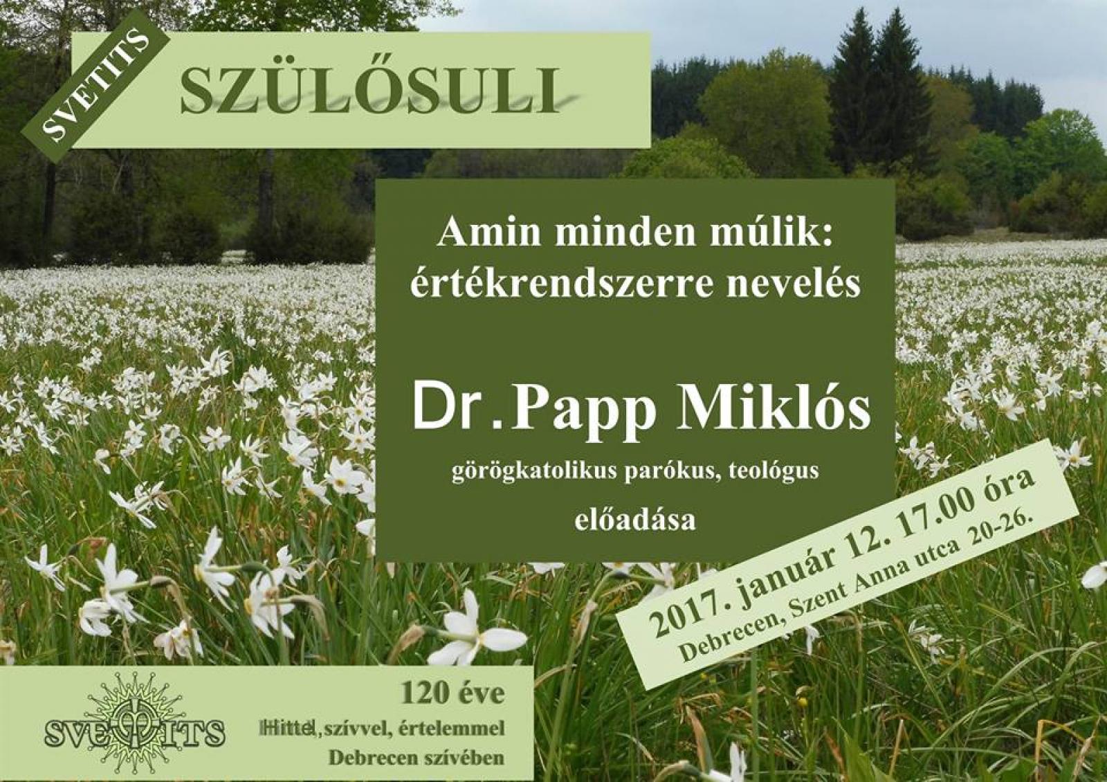 Elsősorban a szülőknek tart előadást a debreceni Svetitsben Dr. Papp Miklós, görögkatolikus teológus. Címe: „Amin minden múlik: értékrendre nevelés”.
