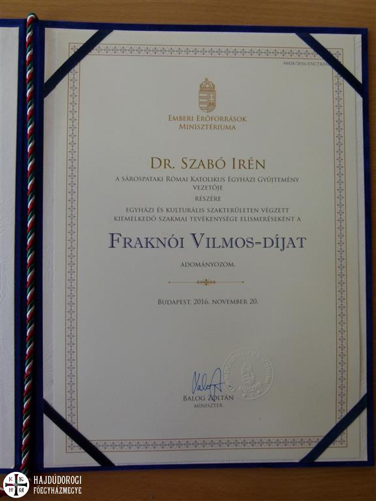 A Fraknói-díjat idén Dr. Szabó Irén, a Sárospataki Római Katolikus Egyházi Gyűjtemény vezetője (Telenkó Miklós atya felesége), Tusor Péter, a Pázmány Péter Katolikus Egyetem docense és Pálos Frigyes katolikus pap, a Váci Székesegyházi Kincstár és Egyházmegyei Gyűjtemény igazgatója vehette át.