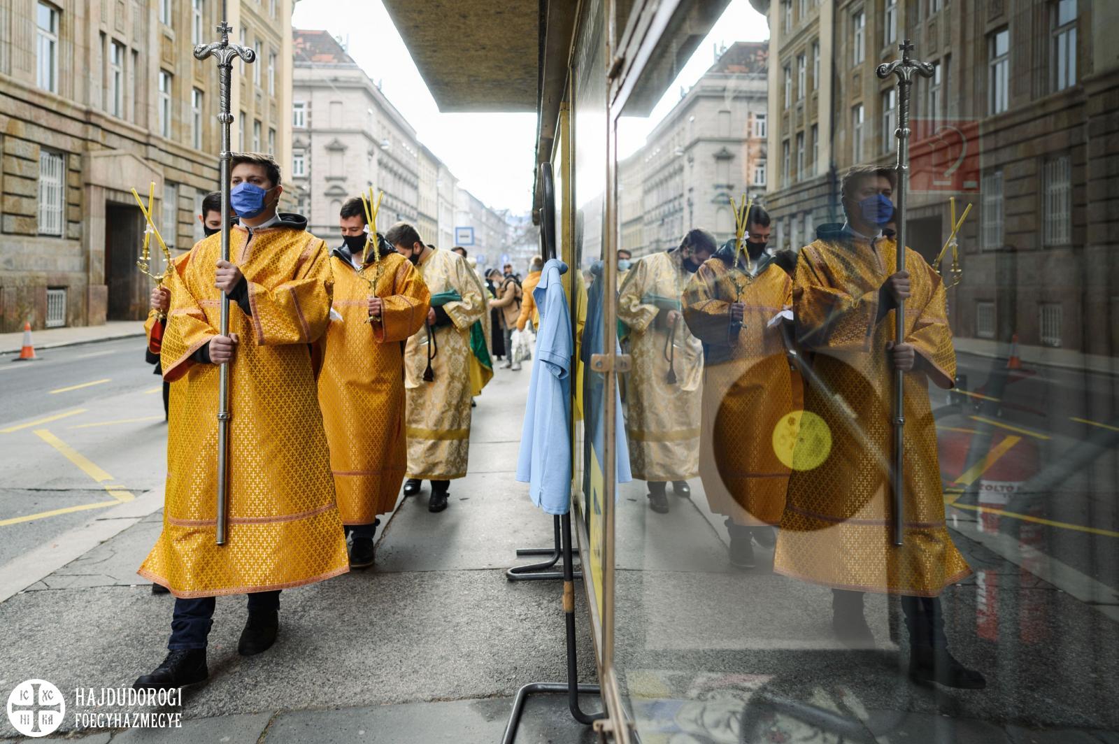 A másik különlegességet azonban valóban az elővigyázatosság tette indokolttá. A szentelés egyik szép mozzanata, hogy a keresztet a tropár éneklése közben háromszor belemerítik a vízbe, majd minden résztvevő ezt a szenteltvízből kiemelt keresztet csókolja meg. Ez most elmaradt, de azért a frissen szentelt Duna víz áldásából minden jelenlévő imádkozó bőségesen részesülhetett.