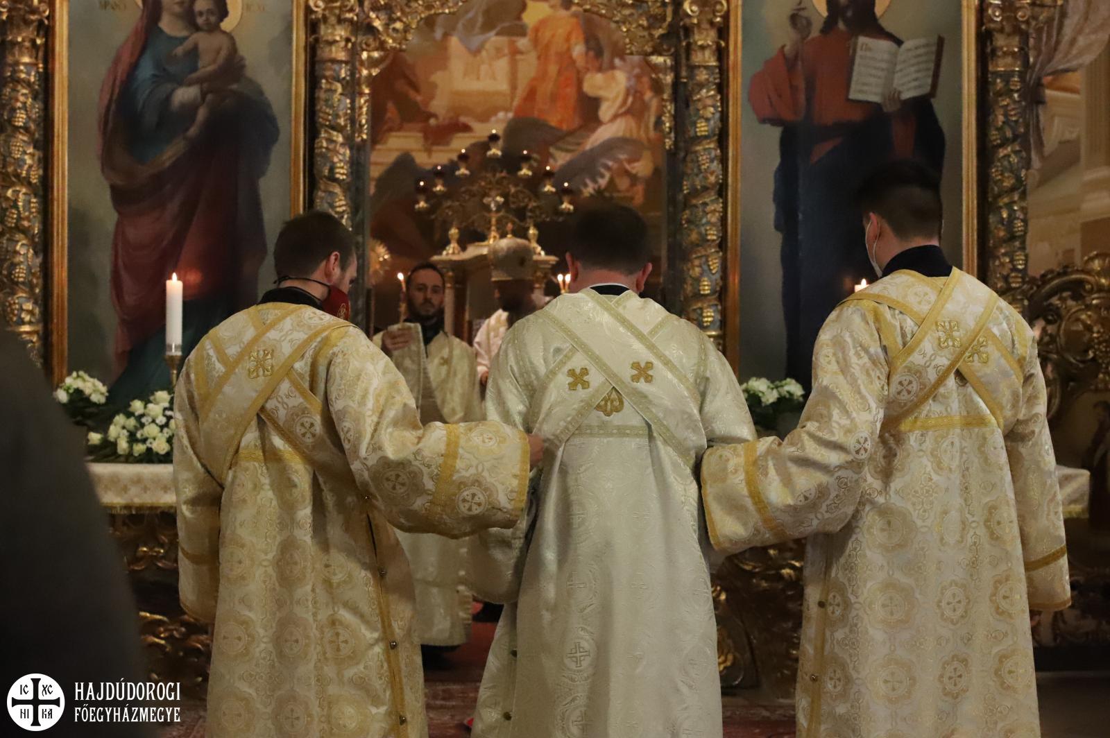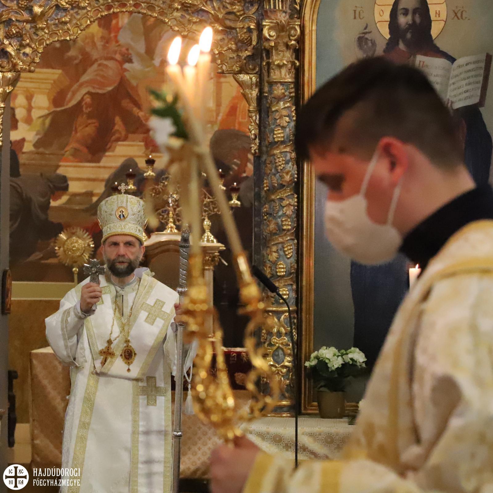 A járvány miatt a fiatalok tanúságtétele most elmarad, de Zoltán testvér diakónussá szentelésével is egyfajta tanúságtételnek lehetünk részesei. Ajándék neki is, hogy miután már sok éven keresztül készült hivatására, éppen ezen a napon lesz a klérus tagja. Fülöp metropolita tanításában megemlékezett Szent Márk apostolról és evangélistáról is, akit szintén április 25-én ünnepel az Egyház. Szent Márk az első evangélium megírója, de azt is lehet róla tudni, hogy félénk fiú volt, akinek útját sok gyarlóság, gyengeség kísérte. Péter tanítványaként kapott szárnyra és lett belőle az első evangélista később pedig Alexandria első püspöke, akinek jelképe az oroszlán.