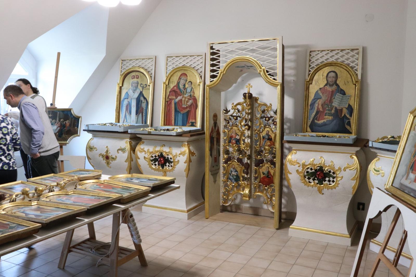 A múzeumi raktárból 2018 novemberében szállították el Szabó Irén főkurátor irányítása mellett a tárgyakat egy Budapesten kialakított restaurátor műhelybe. A 18. század végén készült ikonosztázion restaurálása egyedülálló összefogás során valósulhatott meg. A Néprajzi Múzeum a Görögkatolikus Metropólia rendelkezésére bocsájtotta az ikonosztáz darabjait restaurálásra, hogy azt kezdetben a NEK kiállítás részeként, később pedig a Görögkatolikus Múzeum meghatározó darabjaként legyen látható a nagyközönség számára.