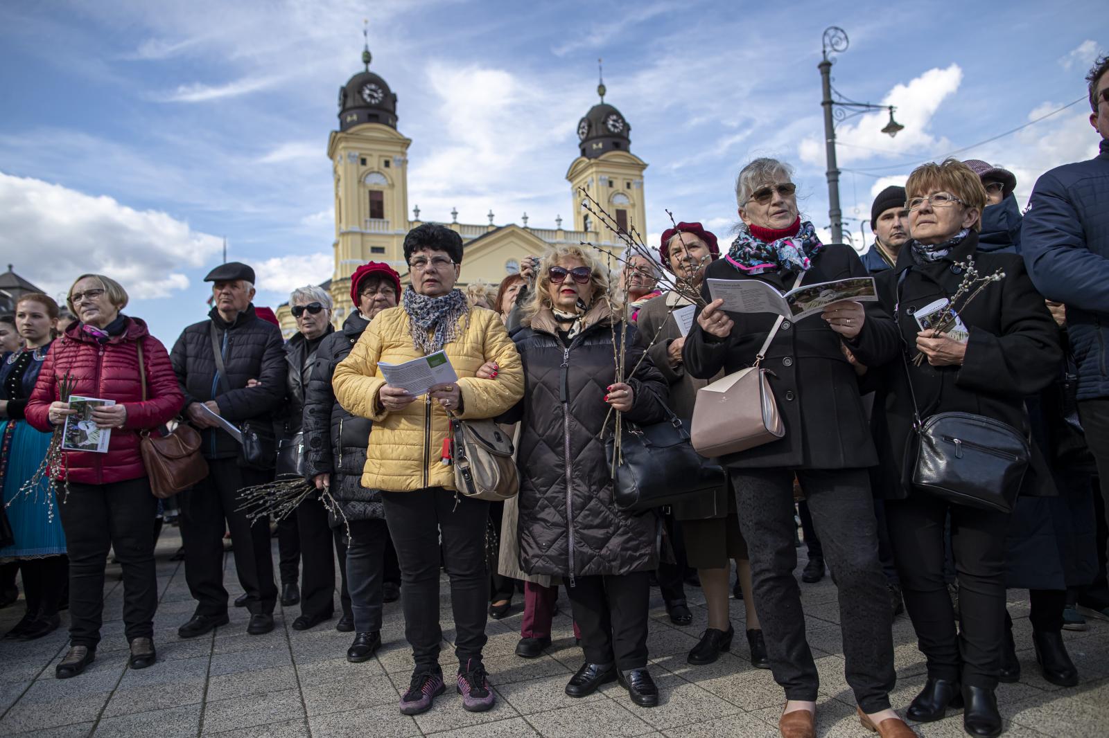 A keresztény világ számára a virágvasárnap, Jézus diadalmas jeruzsálemi bevonulása különleges ünnep. Az ökumenikus liturgiára sokan összegyűltek a Nagytemplom előtt, a Kossuth téren.