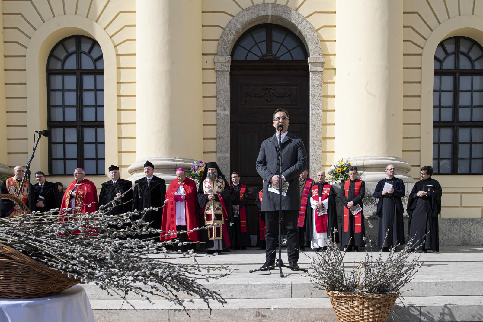 Papp László polgármester az ünnepségen úgy fogalmazott: a város ma azért olyan erős hitben és lélekben, mert történelme összefonódik a kereszténységgel. Hozzátette: a virágvasárnapi keresztúttal kapcsolatos rendezvény a városi felekezetek közötti összefogás jegyében született meg, most pedig a nemzetek közötti együttműködésnek van különösen nagy jelentősége.