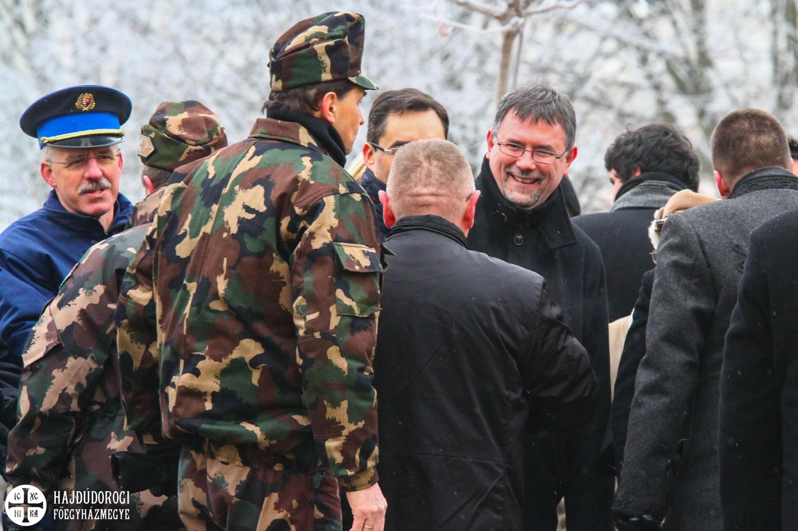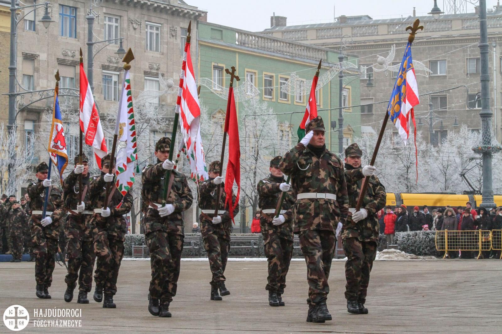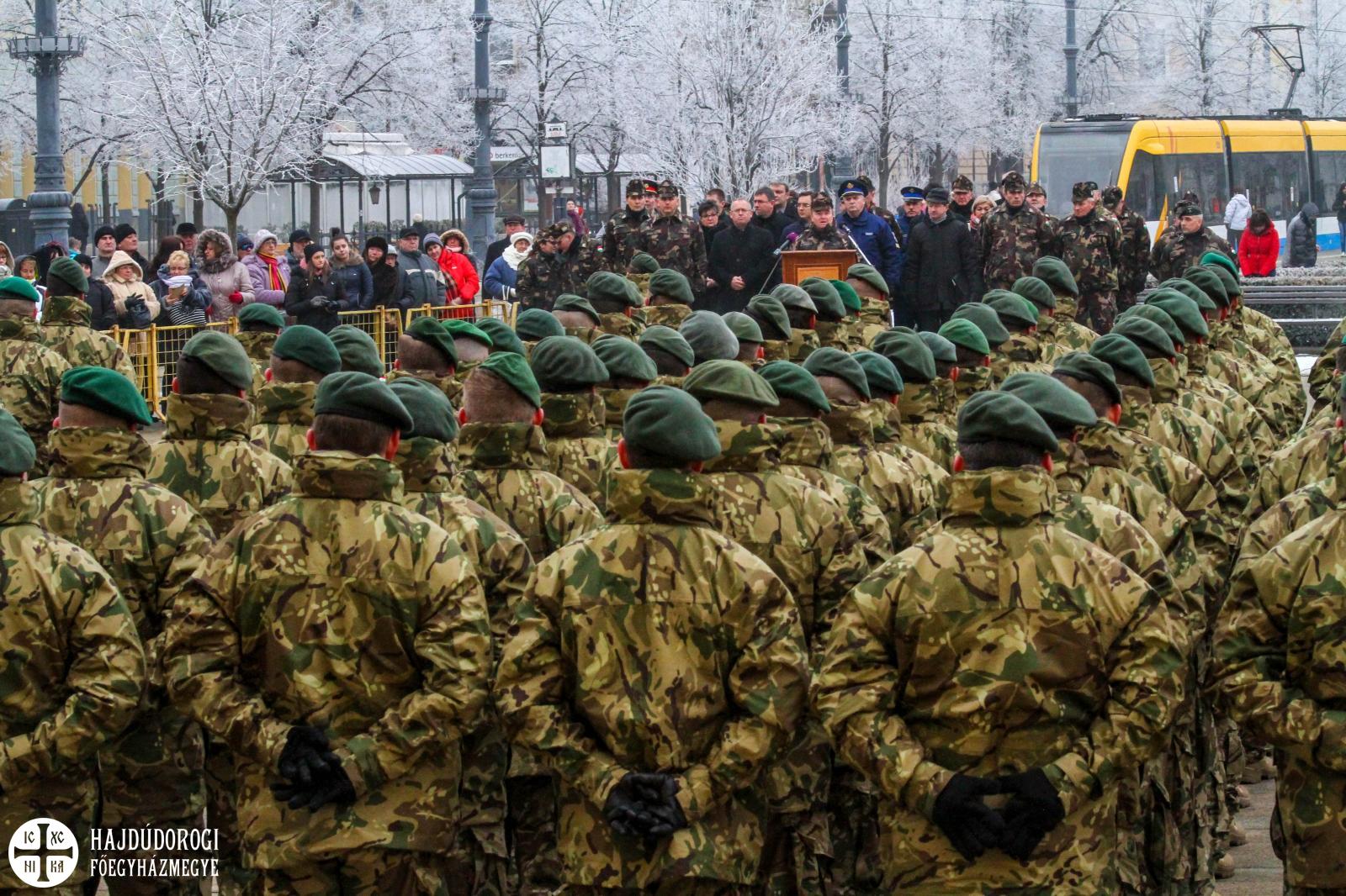 Papp László, Debrecen polgármestere arról beszélt, hogy a magyar katonaságnak az Osztrák-Magyar Monarchiáig visszanyúló, évszázados hagyománya van a békefenntartásban. Magyarország az elmúlt húsz évben bizonyította elkötelezettségét Európai biztonsága, a konfliktusok békés rendezése iránt Koszovóban, Afganisztánban, vagy a migrációs hullám megállításában az ország déli határainál - mondta. Papp László hozzátette: Debrecen büszke arra, hogy a Magyar Honvédség legnagyobb katonai egységének, a Bocskai dandárnak adhat otthont. Kossuth szavait felidézve azt mondta, Debrecen ma is a szabadság őrvárosa, a debreceni katonák őrködnek azon, hogy béke legyen. A cívisváros polgármestere fontos, humanitárius szolgálatnak nevezte a debreceni dandár katonáinak békefenntartó misszióját. A kibocsátó ünnepség végén a békefenntartók díszmenettel tisztelegtek elöljáróik, családtagjaik és a búcsúztatásukra egybegyűlt debreceniek előtt a város főterén.