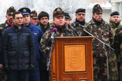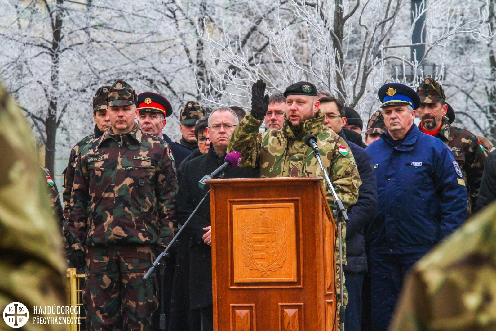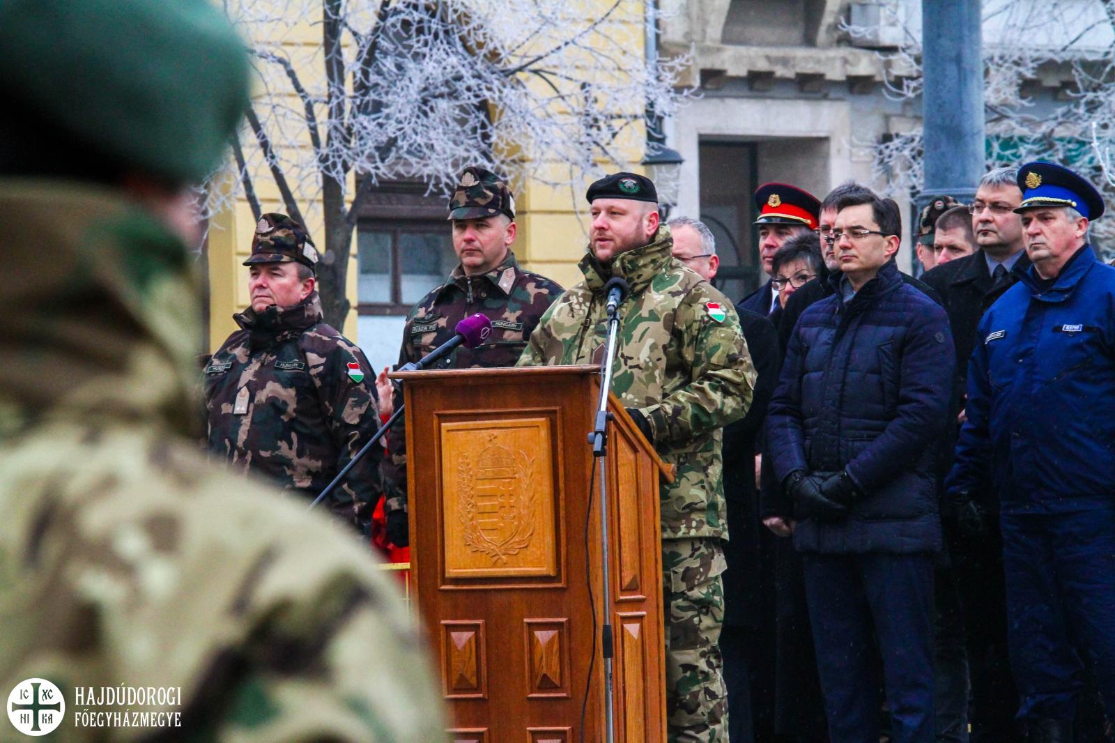 Huszár János vezérőrnagy, a Magyar Honvédség összhaderőnemi parancsnoka az ünnepségen az egyik legfontosabb missziónak nevezte a koszovói szolgálatot, amelyet olyan országban kell teljesíteni, ahol a közelmúltban még háború zajlott. A kikényszerített béke még törékeny, ezért szükség van arra, hogy a KFOR katonái NATO-parancsnokság alatt szolgálva garantálják az ott élő népek biztonságát - mondta a vezérőrnagy. Az összhaderőnemi parancsnok felidézte, hogy Magyarország 1999 óta vesz részt a KFOR keretében a béke biztosításában. A tábornok hangsúlyozta, hogy Magyarország elemi érdeke a Nyugat-Balkán békéje. Elmondta azt is, hogy a koszovói a legnagyobb magyar békefenntartó kontingens: a 350 fős egység ebben a félévben a térségből kivonuló portugálok feladatait is átvéve, önálló műveleti zászlóaljként fog szolgálatot teljesíteni. Huszár János felhívta a katonák figyelmét, hogy a misszió során Magyarországot, a Magyar Honvédséget képviselik, s kérte: úgy álljanak helyt a szolgálatban, hogy "öregbítsék a magyar katona, a debreceni katona hírnevét". A parancsnok végezetül arra hívta fel a külföldi misszióba induló katonák figyelmét, hogy nehéz szolgálatuk során vigyázzanak egymásra, s tegyenek meg mindent azért, hogy "magabiztos, segítőkész, pártatlan katonákat lásson a lakosság".