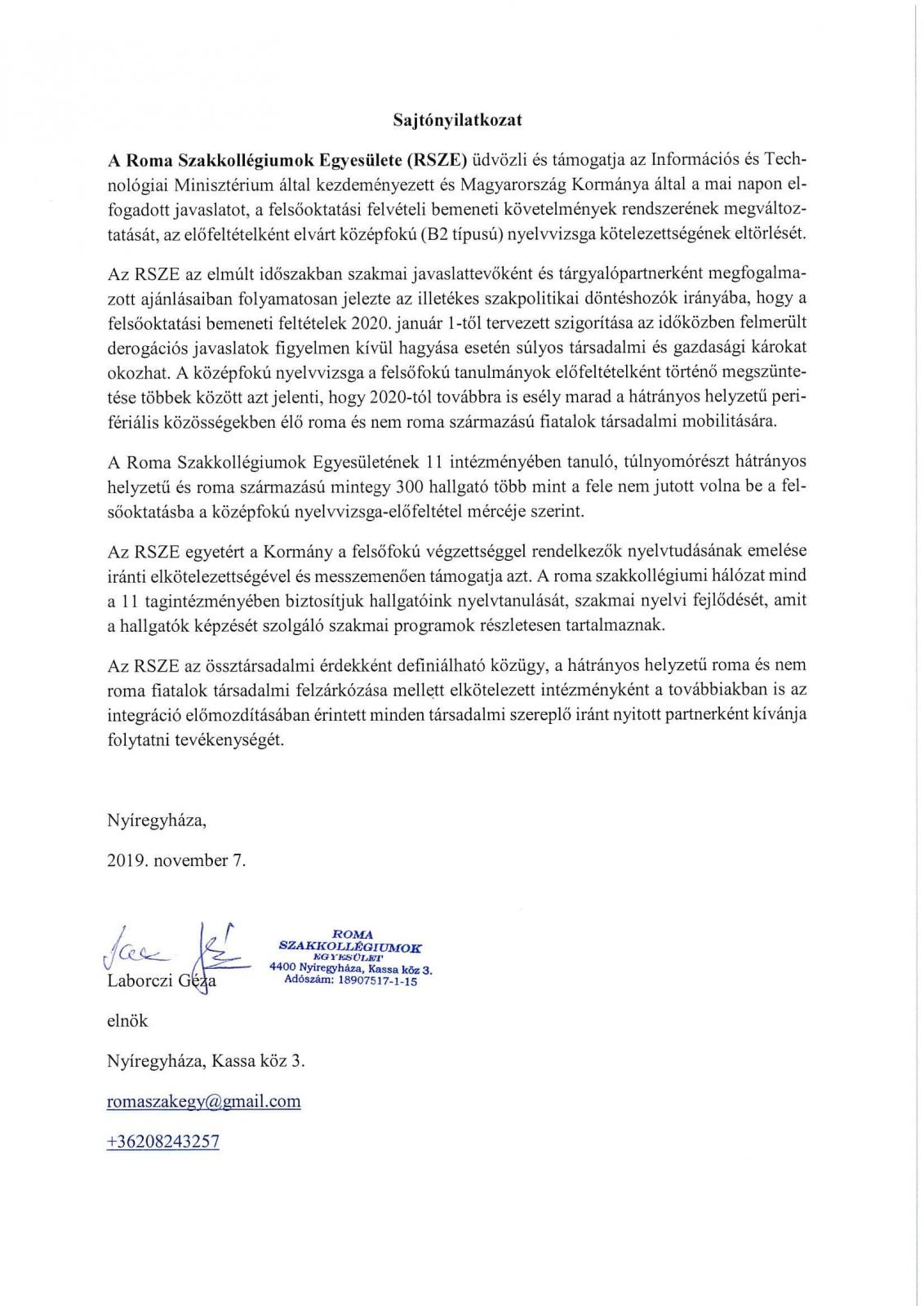 A Roma Szakkollégiumok Egyesülete üdvözli a döntést, mert így továbbra is marad esély a hátrányos helyzetű roma és nem roma származású fiatalok „társadalmi mobilitására” – olvasható abban a közleményben, amellyel reagálnak az intézkedésre. A teljes közleményt az alábbiakban olvashatják.