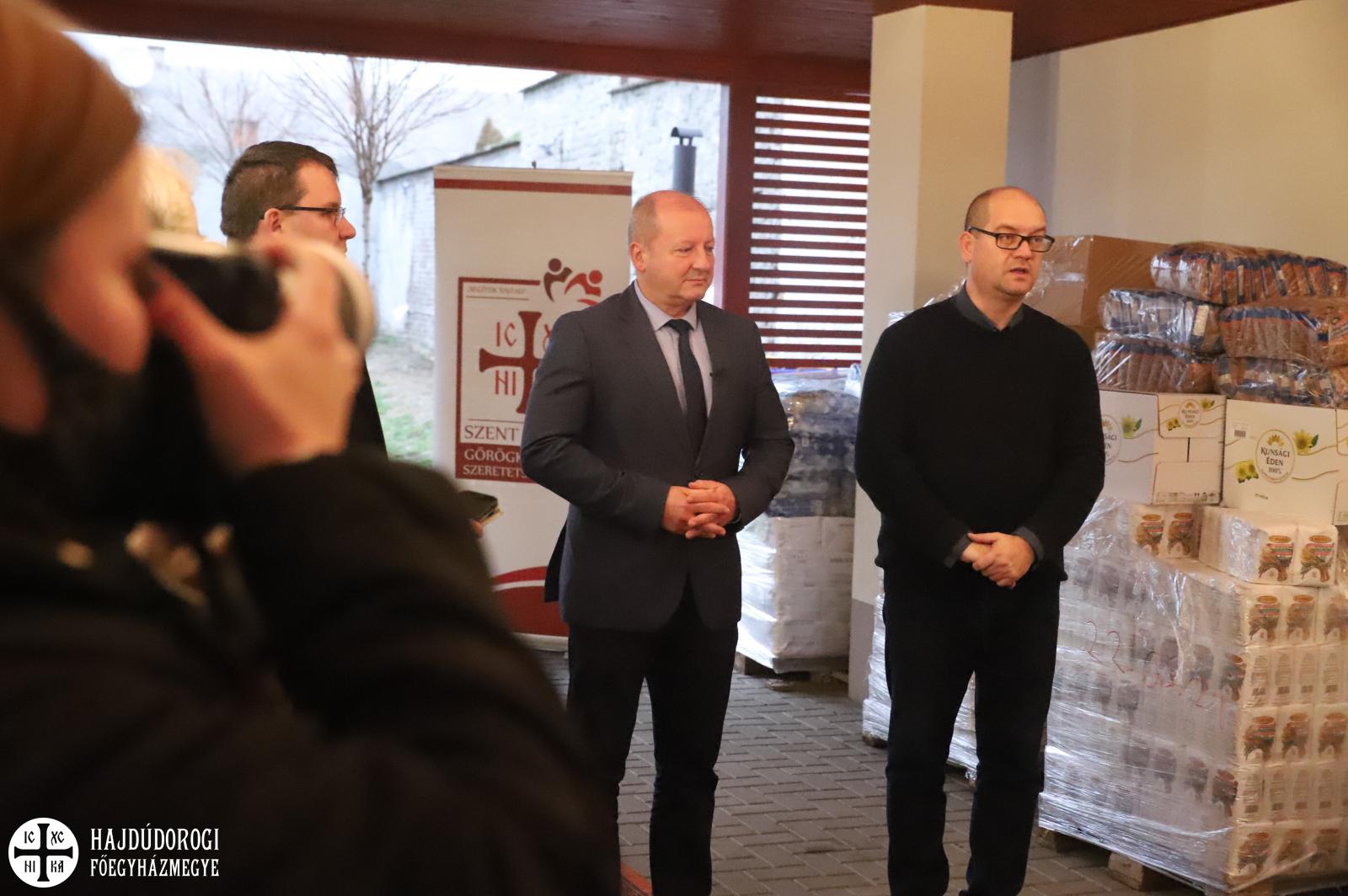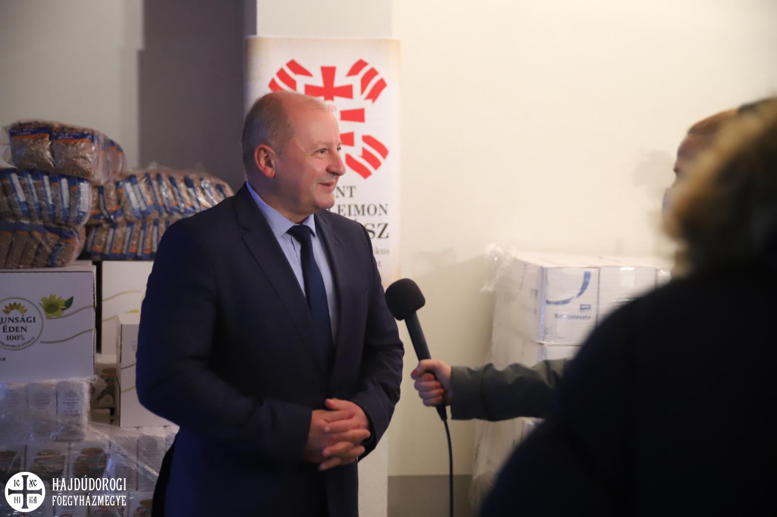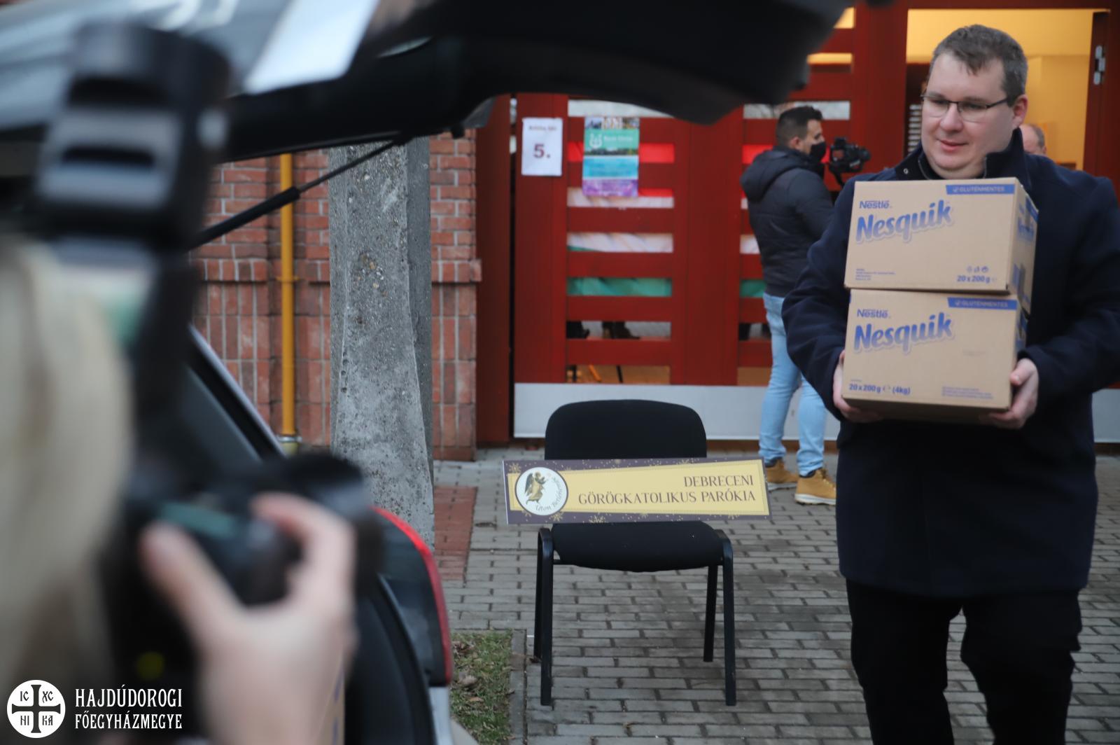 Simicskó István elmondta: három tonna tartósélelmiszert – olajat, száraztésztát, cukrot, rizst, babot, konzerveket, kávét – gyűjtöttek össze, a küldemény továbbításához pedig a Hajdúdorogi Főegyházmegye segítségét kérték, hogy a rászorulókhoz jusson el karácsonyig.
