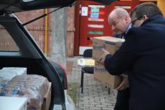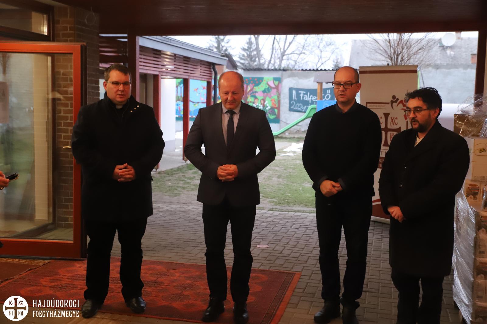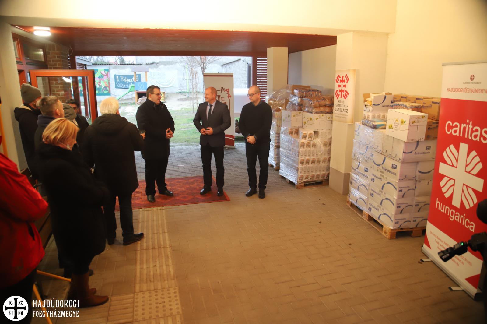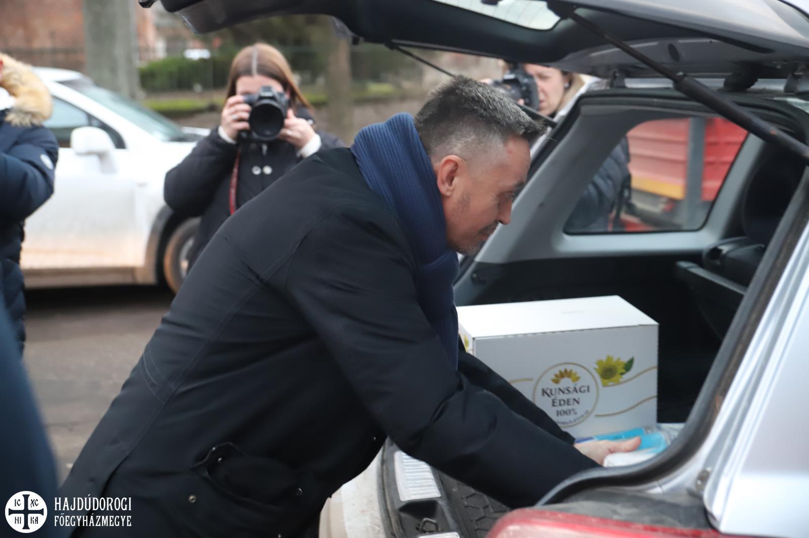 Simicskó István elmondta: három tonna tartósélelmiszert – olajat, száraztésztát, cukrot, rizst, babot, konzerveket, kávét – gyűjtöttek össze, a küldemény továbbításához pedig a Hajdúdorogi Főegyházmegye segítségét kérték, hogy a rászorulókhoz jusson el karácsonyig.