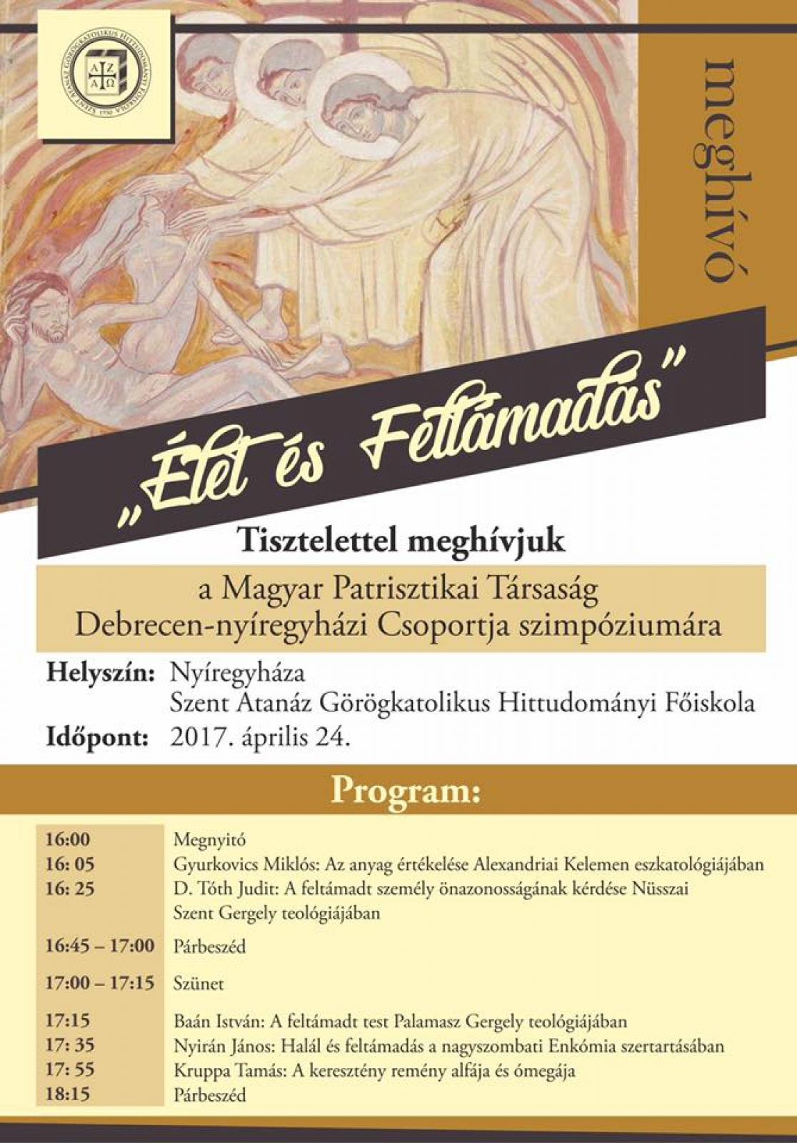 Élet és Feltámadás címmel rendeznek tanácskozást Nyíregyházán, a Szent Atanáz Görögkatolikus Hittudományi Főiskolán.
