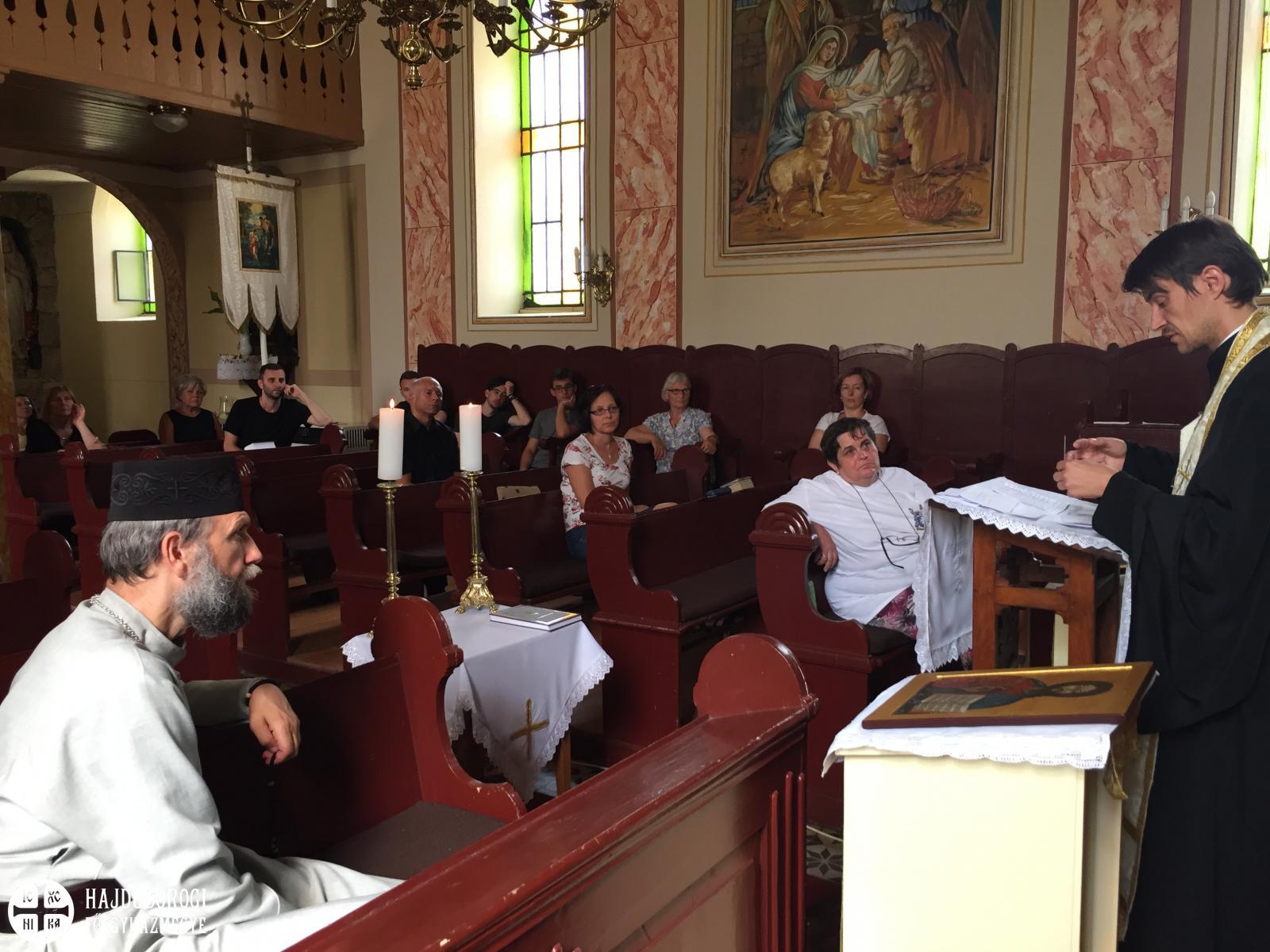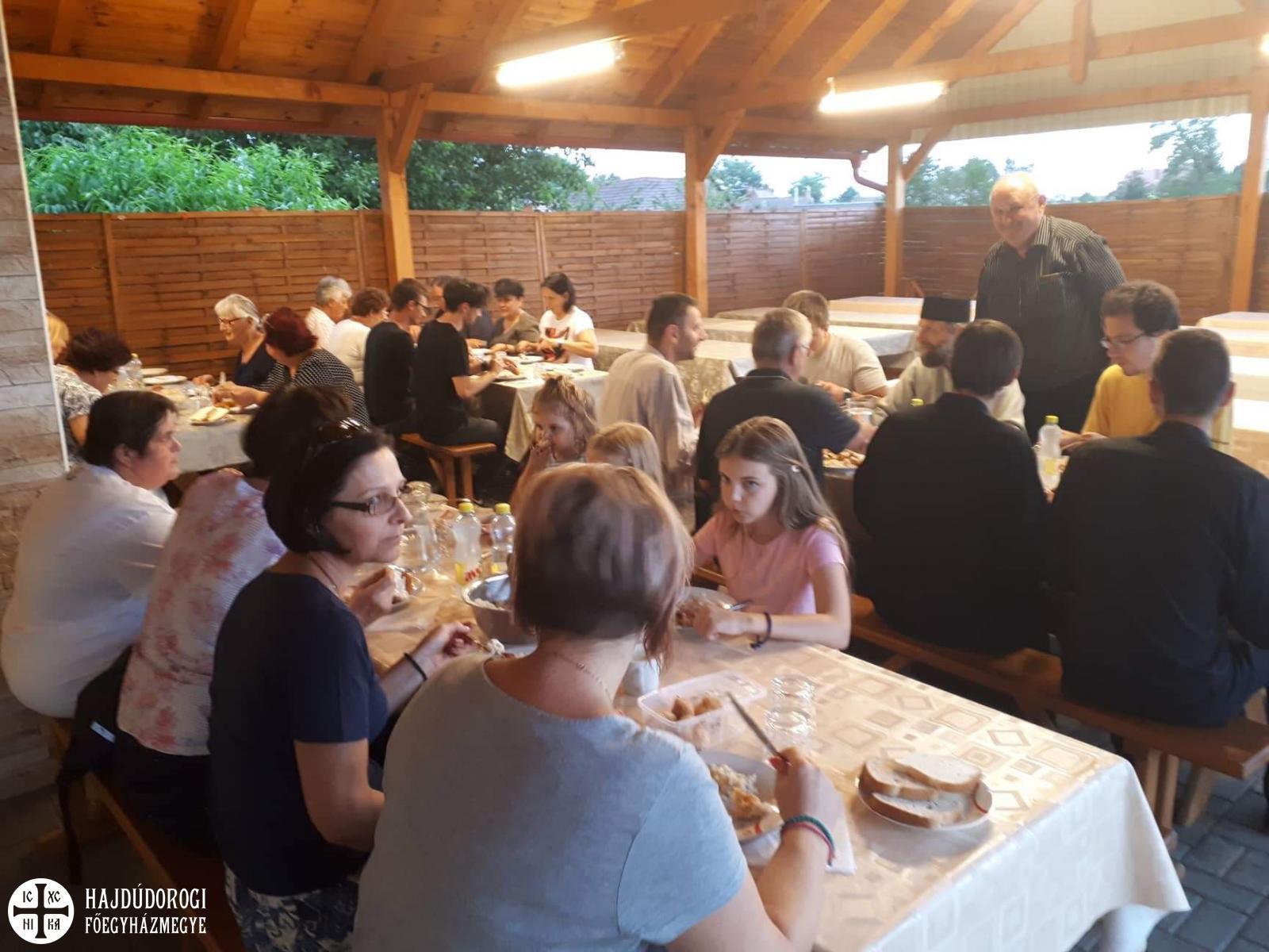 Vasárnap a záró Szent Liturgiát Fülöp érsek-metropolita atya végezte Árpád atyával és a helyi parókussal, Szimicsku Ferenc esperessel, s amelyre nagy meglepetésként Seszták István helynök atya is megérkezett. Az ünnepi Liturgia után lehetőség nyílt a helyi hívekkel is beszélgetni, akik közül sokan a tábor zsolozsmáiba és még a zsoltárolvasásokba is bekapcsolódtak. Végül természetesen agapéval zárult a tábor, amelynek megkoronázásaként születésnapi tortát is fogyaszthattunk, szintén Árpi atya jóvoltából.