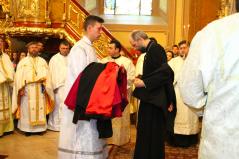 Kocsis Fülöp metropolita szép párhuzamot vont a nagyszülők és a papok feladatai között…Mint fogalmazott: a papszentelés napja mindig meghatározó a szentelendő számára. A gondviselés pedig úgy hozta, hogy nem az eredeti időpontban (a szíriai út miatt egy héttel el lett halasztva), hanem ezen a napon szenteljük pappá Pétert, amikor a leginkább a papságra vonatkozó evangéliumi részlet hangzik el: amikor az apostolok - mikor még halászlegények voltak - hogyan váltak apostolokká Jézus egyetlen szavára. „Jöjjetek, és én emberhalásszá teszlek titeket!”