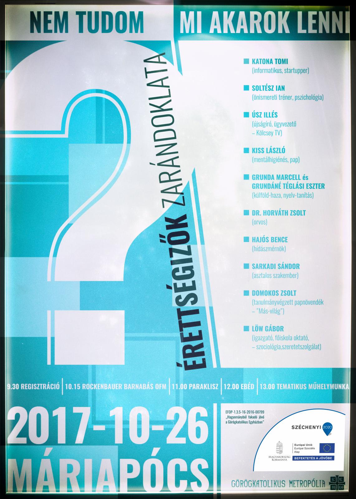 2017. október 26-án csütörtökön rendezik meg az ország valamennyi görögkatolikus, végzős középiskolás diákjának az Érettségizők zarándoklatát. A továbbtanuláshoz is segítséget nyújtanak a szervezők, hiszen tematikus műhelymunkában is részt lhet venni.