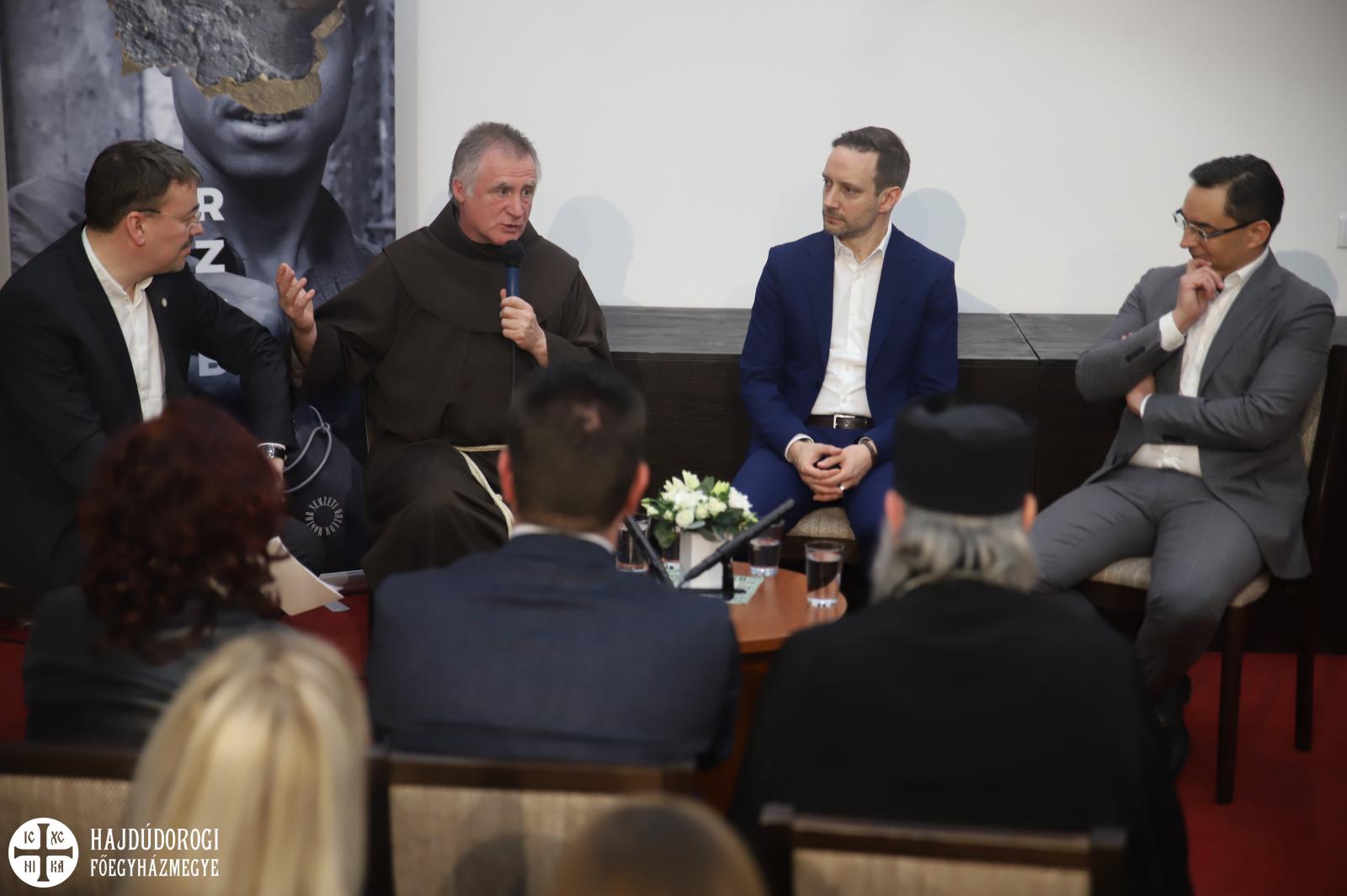 Szó esett sok más mellett a Szerelem-ösvény projektről, amit a ferences rendi szerzetes egyfajta jegyesoktatásként álmodott meg. Az ösvény kilenc állomáson keresztül vezet végig a szerelem virágzásától az örök hűség fogadásáig, és Debrecen városa éppen a „Döntés” stációt fogadta örökbe. Ennek kapcsán beszélt Papp László a jelenlevőknek arról, milyen jelentőségű a döntés az életében városvezetőként, Azbej Tristan pedig megosztotta annak különleges történetét, milyen út vezette őt ahhoz a döntéshez, hogy a szülőhazáját szolgálja.