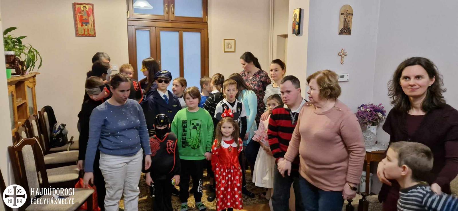 Fontosnak tartjuk, hogy minden évben parókiánk gyermekei és családja összegyűljenek farsangolni. A délután jelmezversennyel kezdődött, ahol jobbnál jobb és nagyon ötletes, sok esetben saját készítésű jelmezbe öltöztek be gyermekeink. Nagyon nehéz dolga volt a zsűrinek, de sikerült a legigazságosabb és mindenki számára legkedvezőbb döntést meghoznia. Az izgulásnak nem volt még vége, hiszen következett a várva várt tombola, ahol értékes nyeremények várták új kis tulajdonosukat. A gyermekeket finom uzsonna várta, így figyeltünk a lélek gyarapodása mellett testi táplálkozásunkra is. A délután további részében az önfeledt szórakozásé és játéké volt a főszerep, s mindannyiunk arcán ott volt a mosoly, hiszen ismét egy szép és áldott délután lehetett a miénk.