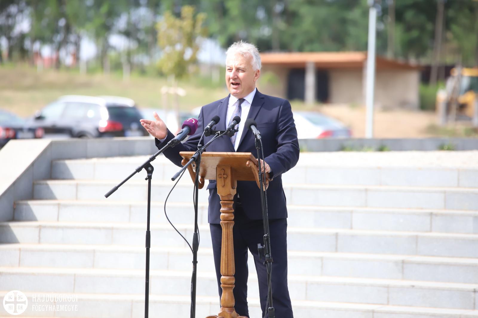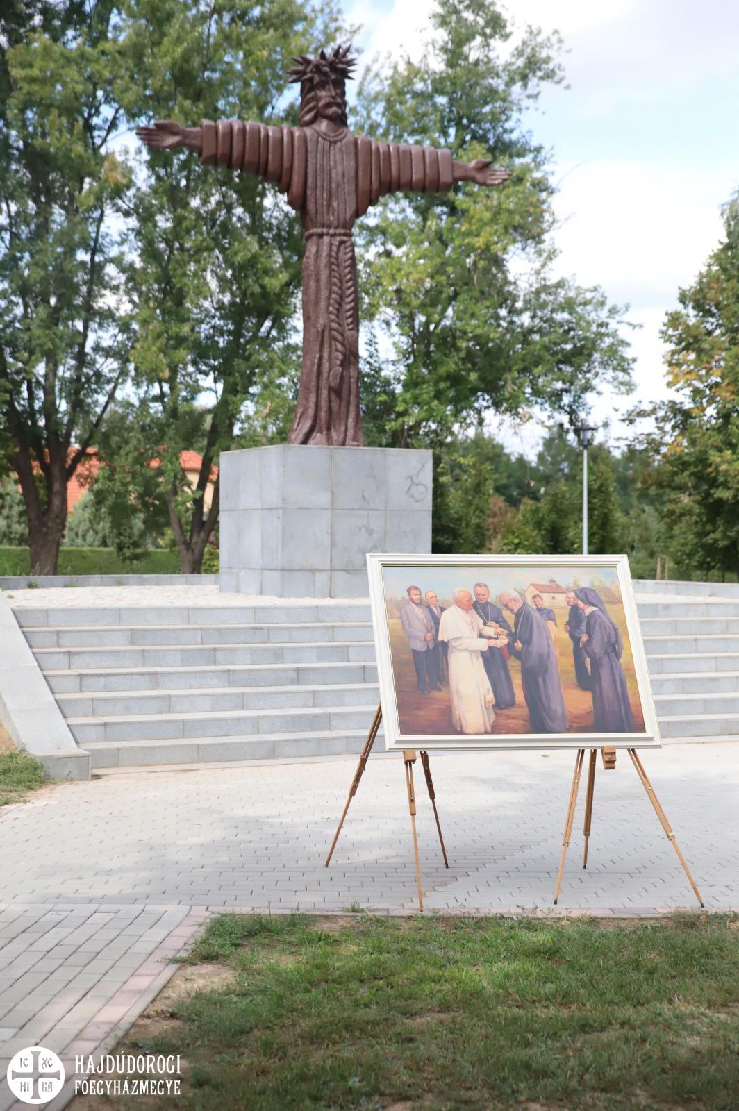 A tér arról nevezetes, hogy itt találkozott a katolikus hívekkel 1991-ben a Szentatya, II. János Pál, és ezen a területen állították fel a pápalátogatás monumentális színpadát. Nemrég viszont – ahogy arról köszöntőjében Seszták Oszkár, a megyei közgyűlés elnöke, és dr. Simon Miklós országgyűlési képviselő is szólt – európai uniós forrásból, 260 millió forintból csodálatos közösségi színtér jött létre itt kilátóval, középpontjában egy hatalmas Krisztus szoborral.