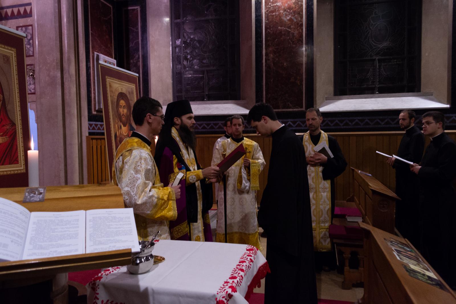 A vecsernye végén volt az olajkenet (miroválás) és megáldott kenyérből és borból is részesültünk majd az ünnepi vacsora következett, ahol gratulálhattunk a frissen avatott felolvasónak.