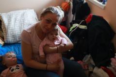 A három hónapos Vira és nővére, a mindjárt kétéves Emilia 30 óra alatt jutottak el Kijevből a határig. Még jártak a vonatok, de már taposták egymást az emberek a pályaudvaron. Yulia férjének van még az előző házasságából egy nagyobb lánya, ezért az ukrajnai mozgósítási törvény értelmében mentesülhetne a katonai szolgálat alól, ám a határon egy hiányzó papír miatt nem engedték ki a férfit. Már ötödik napja vannak a rögtönzött szálláson, de a kicsik napról napra nyűgösebbek.